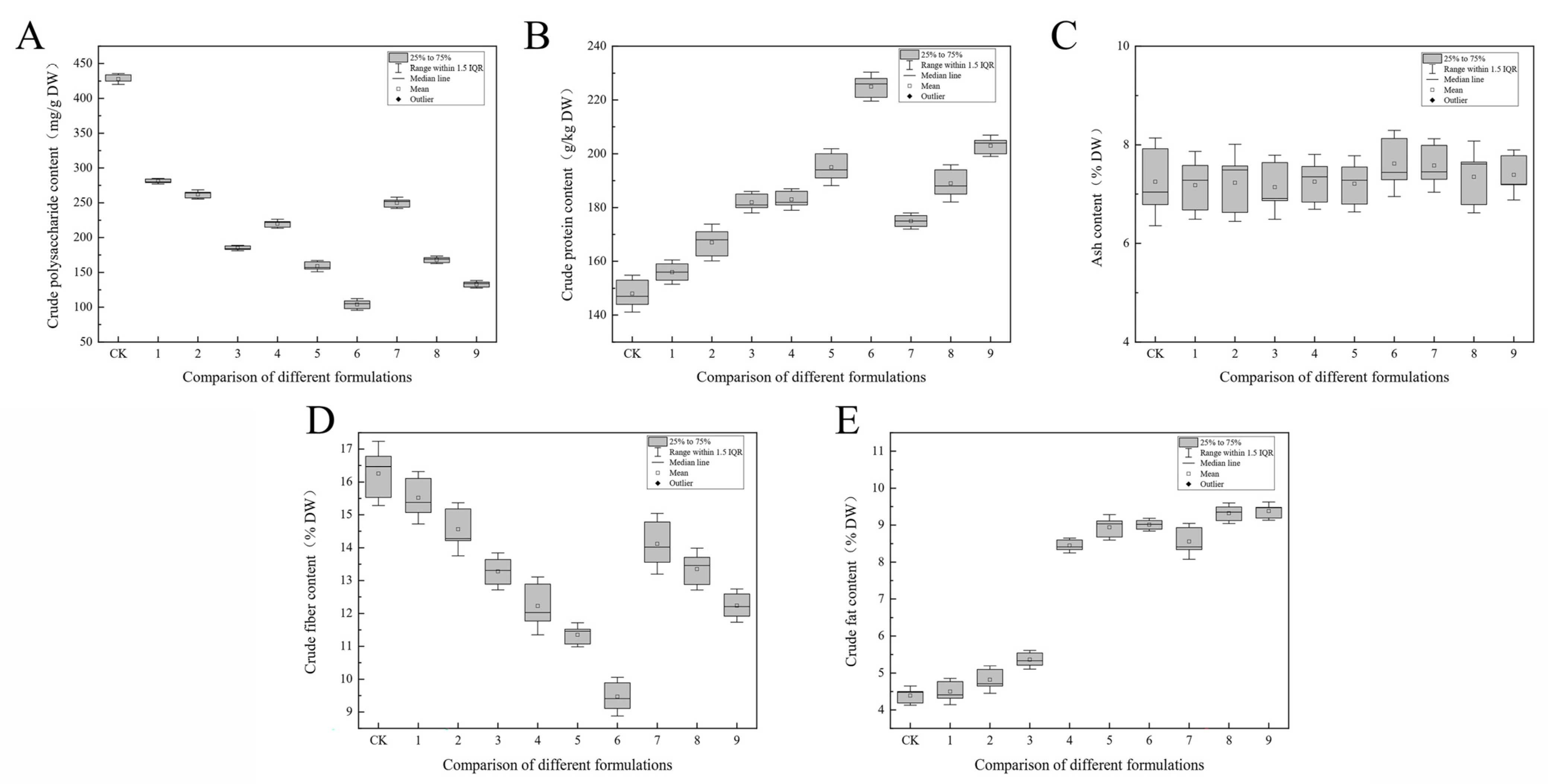 3.3. Comparison of Agronomic Traits of Hericium erinaceus with Different Formulas