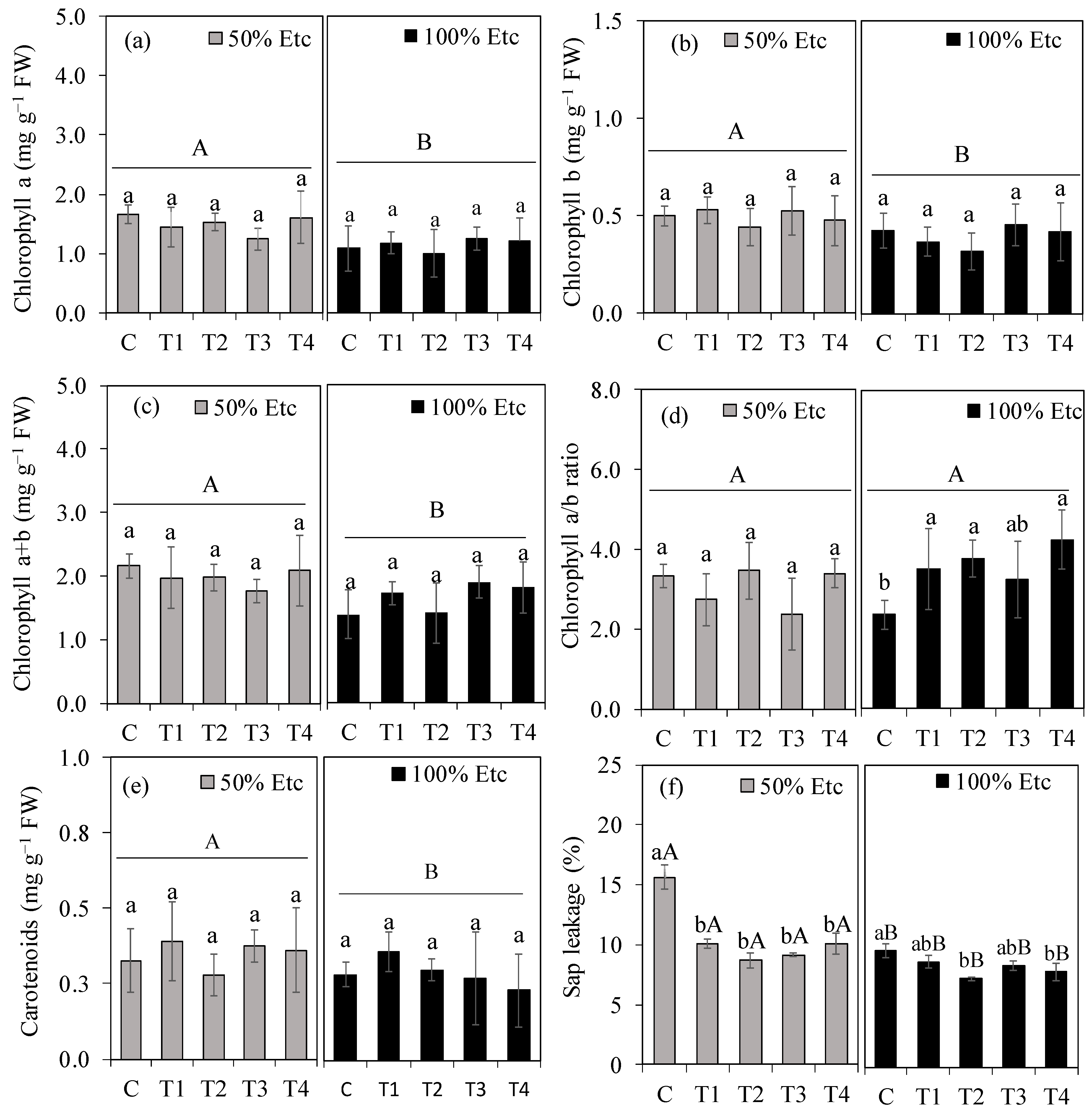 2.7.2. Gas Exchange and Photosynthetic Pigments