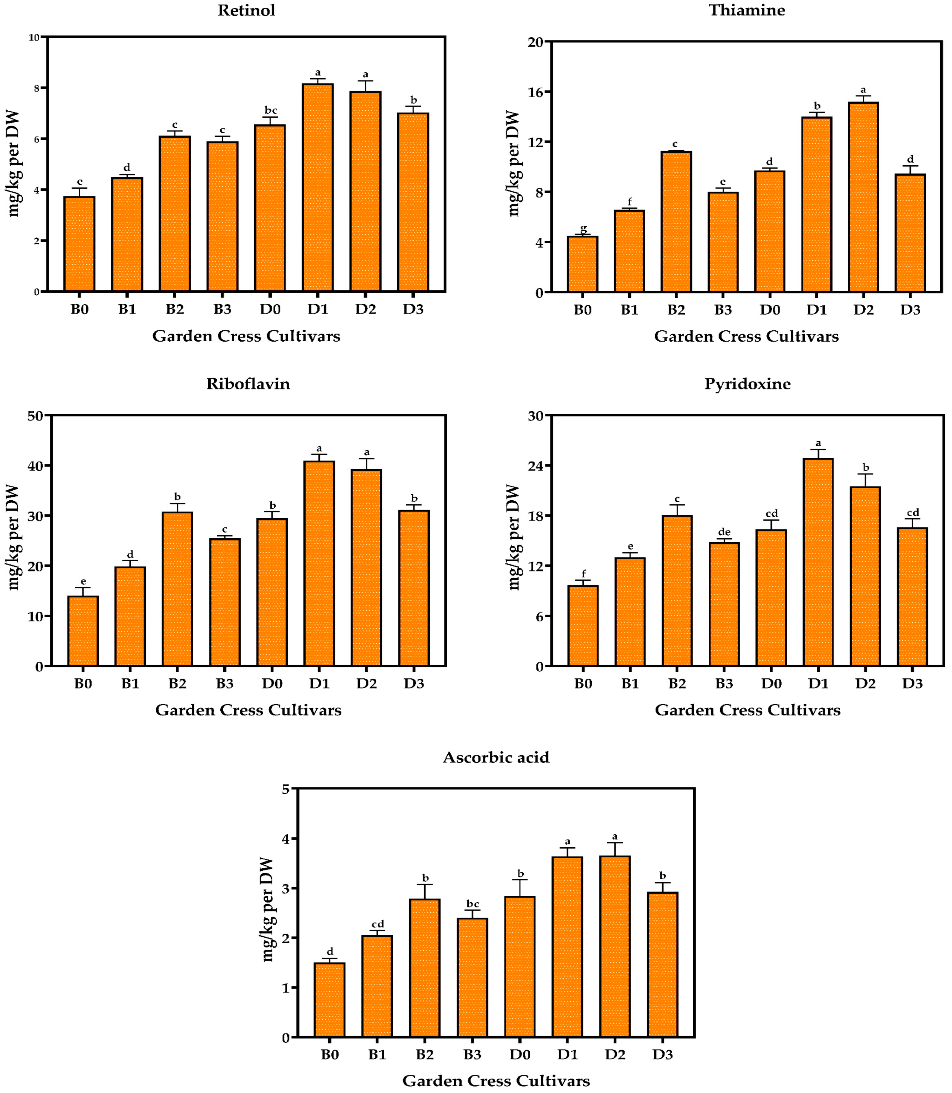 2.7. Determination of Vitamin Content of Garden Cress Cultivars