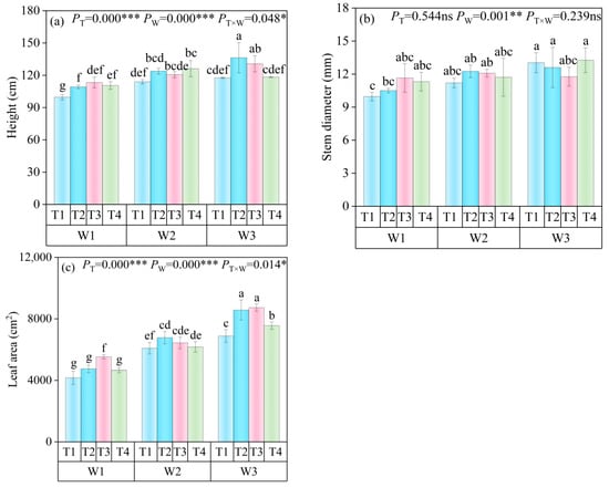 2.4.1. Plant Height, Stem Diameter, and Leaf Area