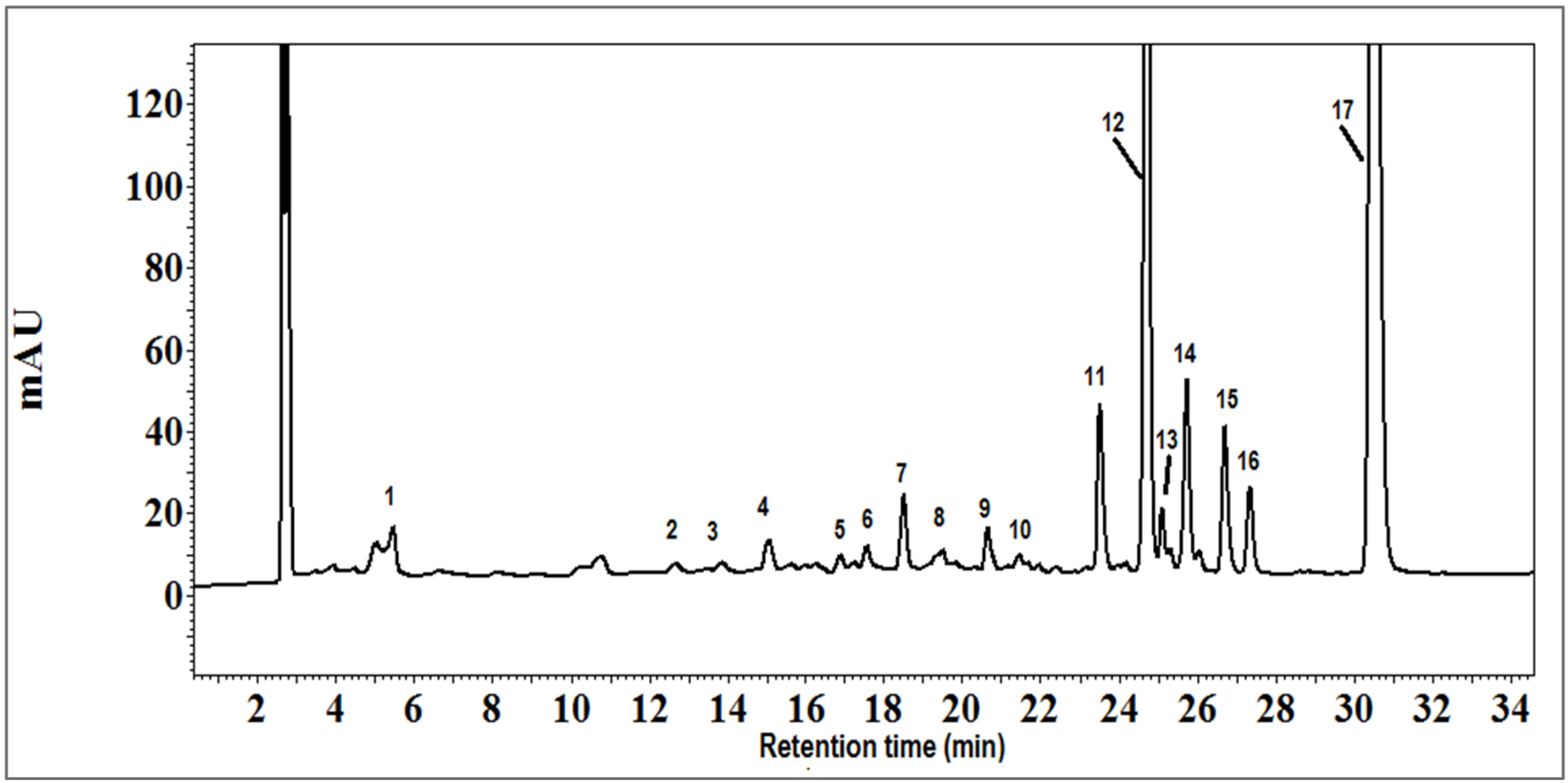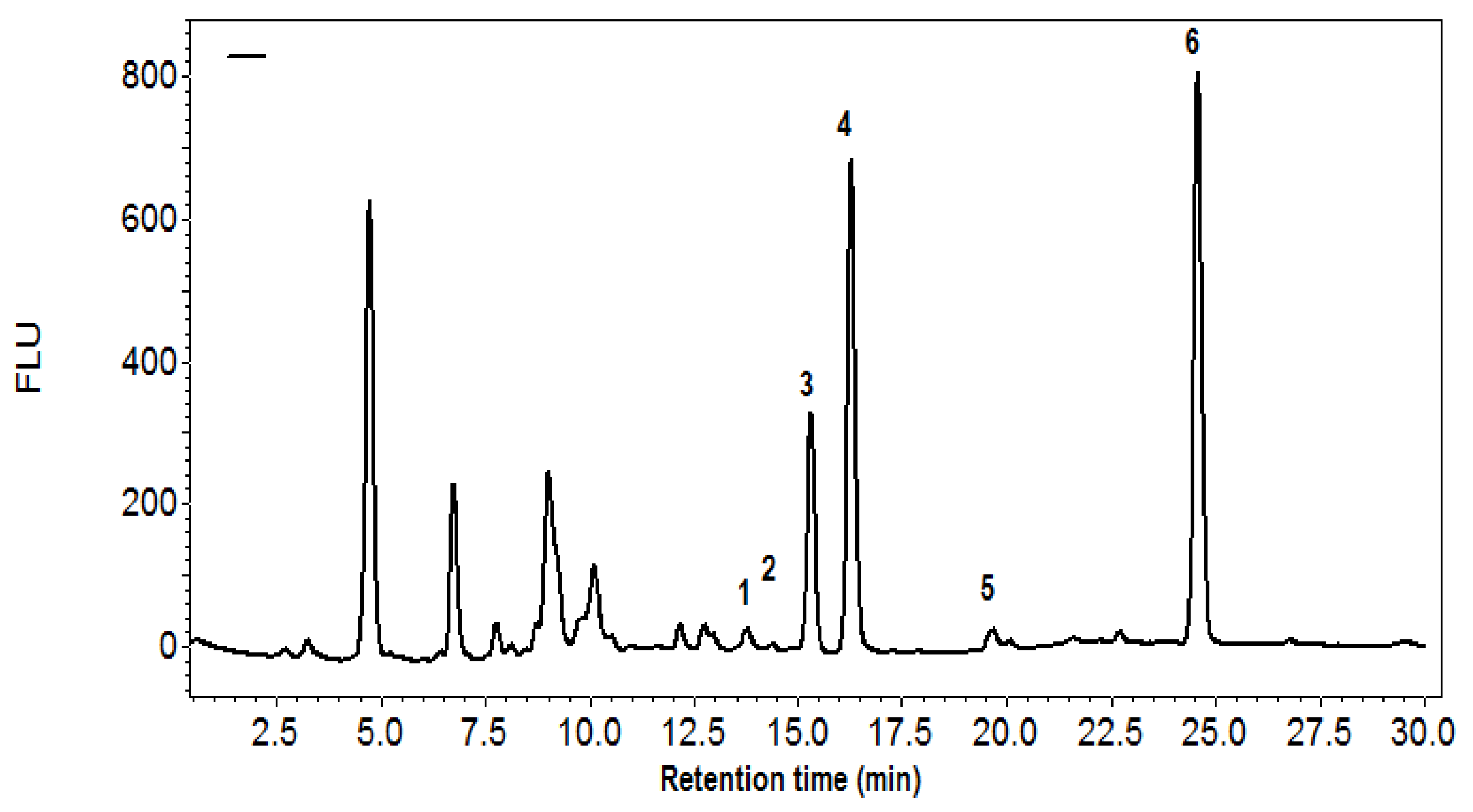2.4. Analysis of Carotenoids, Tocopherols, and Vitamin C