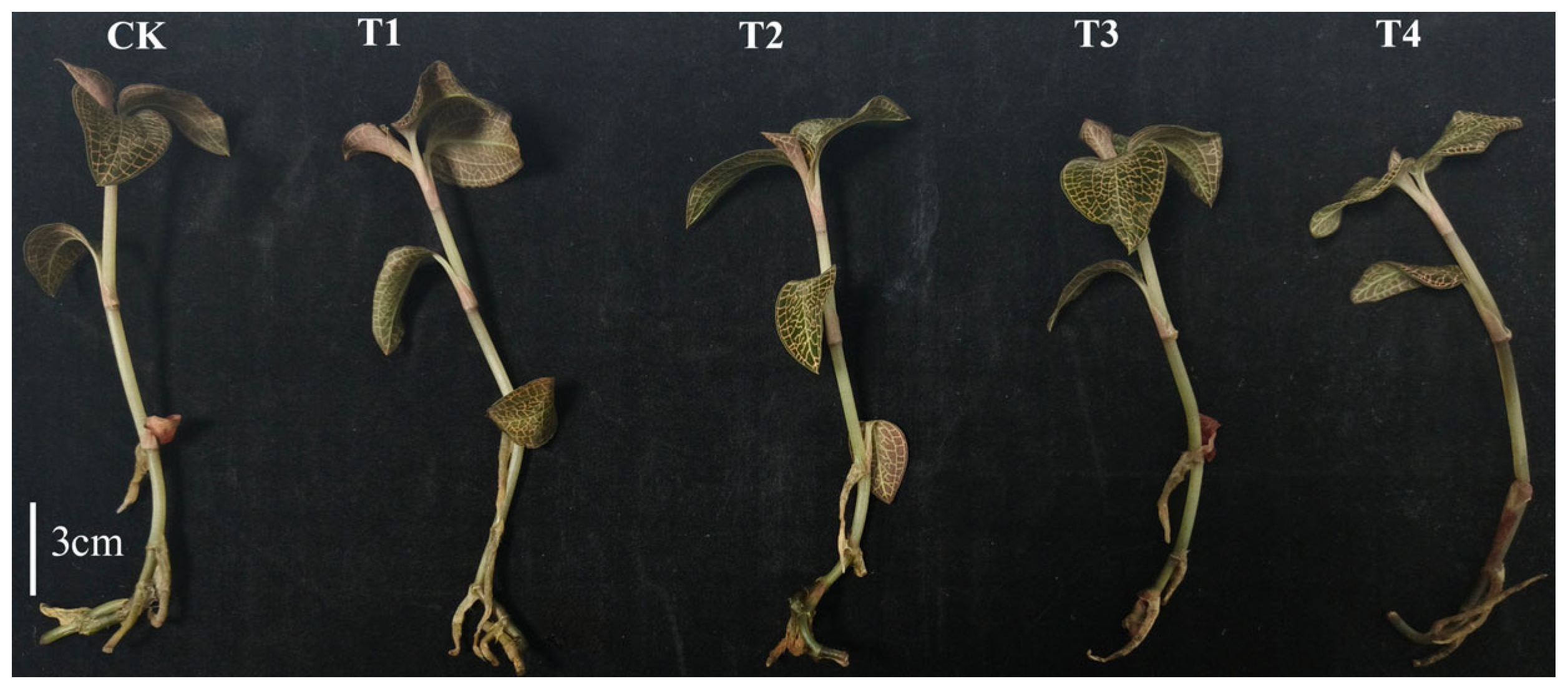 - Gao, Y.; Wu, J.; Pan, Y.; Zhao, J.; Zou, X. Effects of Different pH Values on the Growth and Physiological Characteristics of Anoectochilus roxburghii. J. Plant Growth Regul. 2025, 44, 4477–4487. [Google Scholar] [CrossRef]
