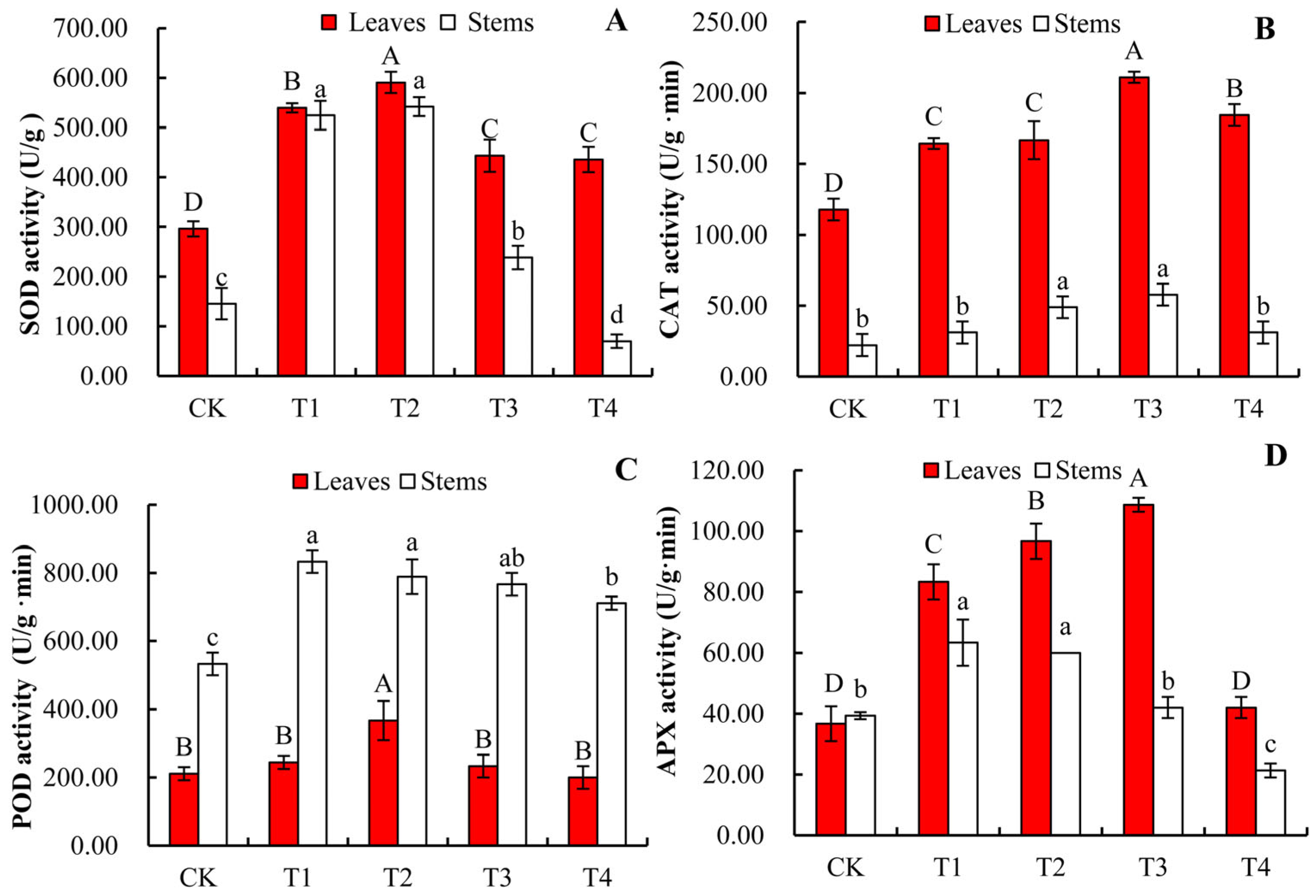 3.2. Effects of Salt Stress on Antioxidant Enzyme Activities in A. roxburghii