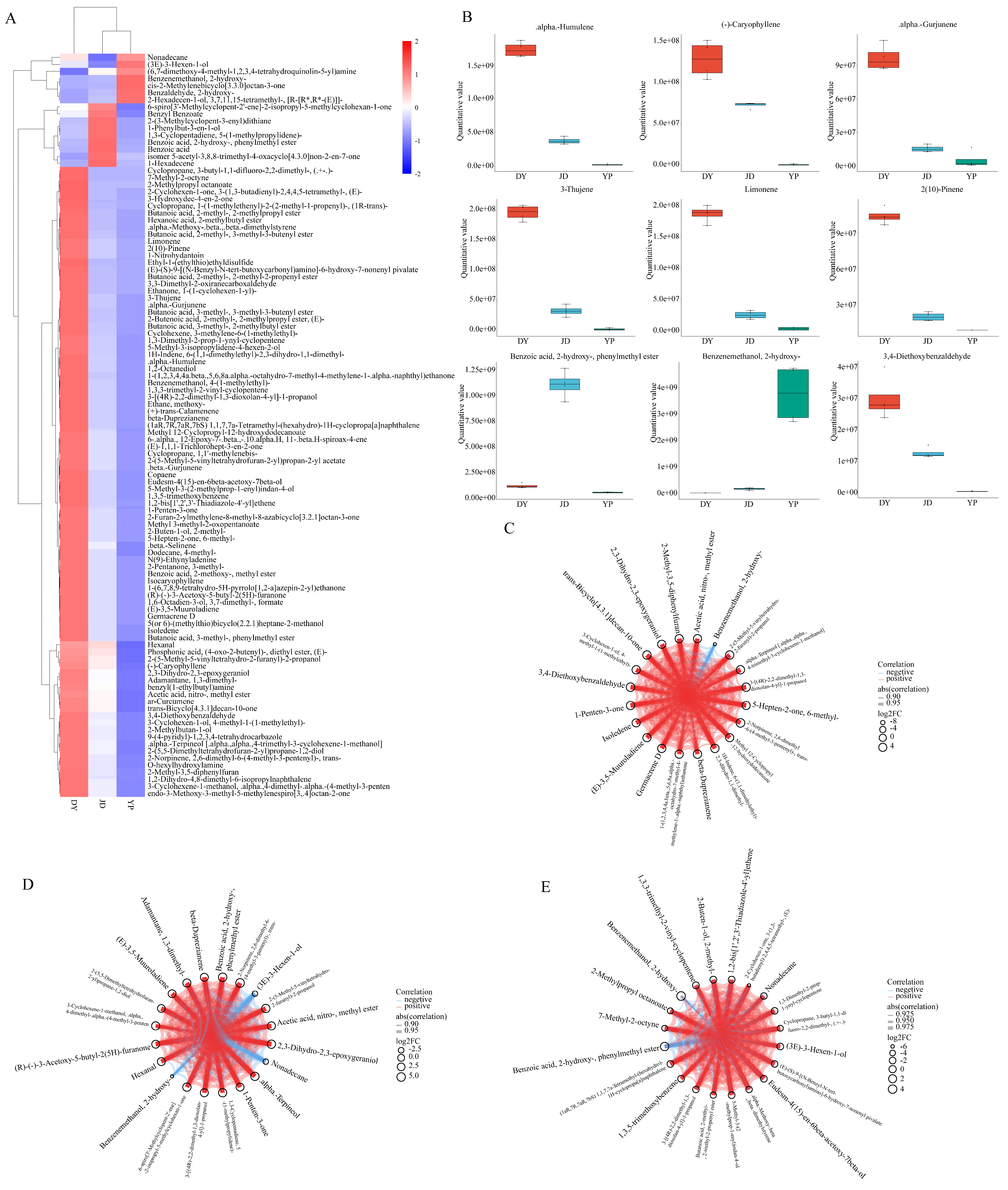 2.3. Quantitative and Correlation Analysis of Differential VOCs