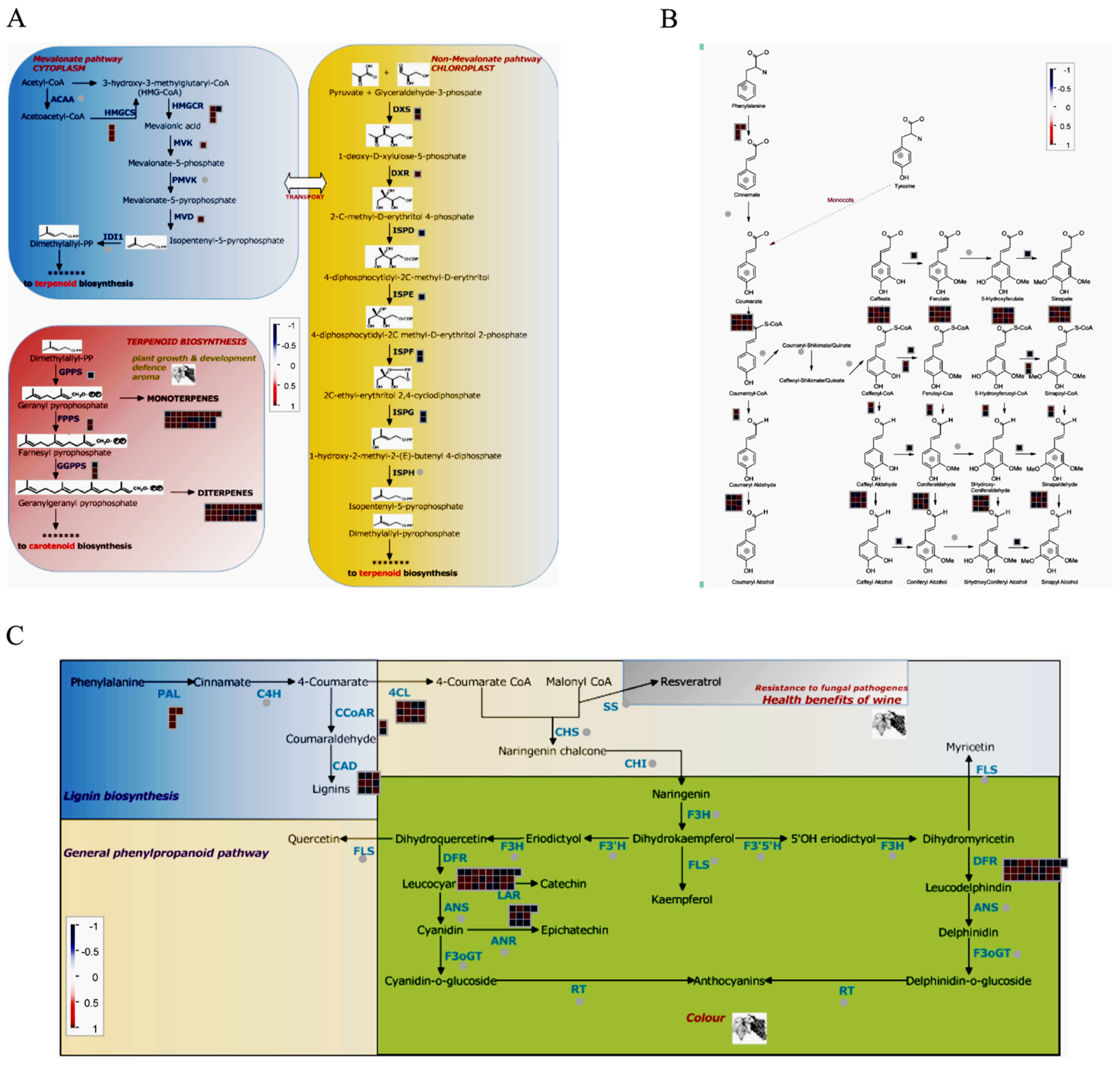 2.6. Weighted Gene Co-Expression Network Analysis (WGCNA) of VOC Biosynthesis