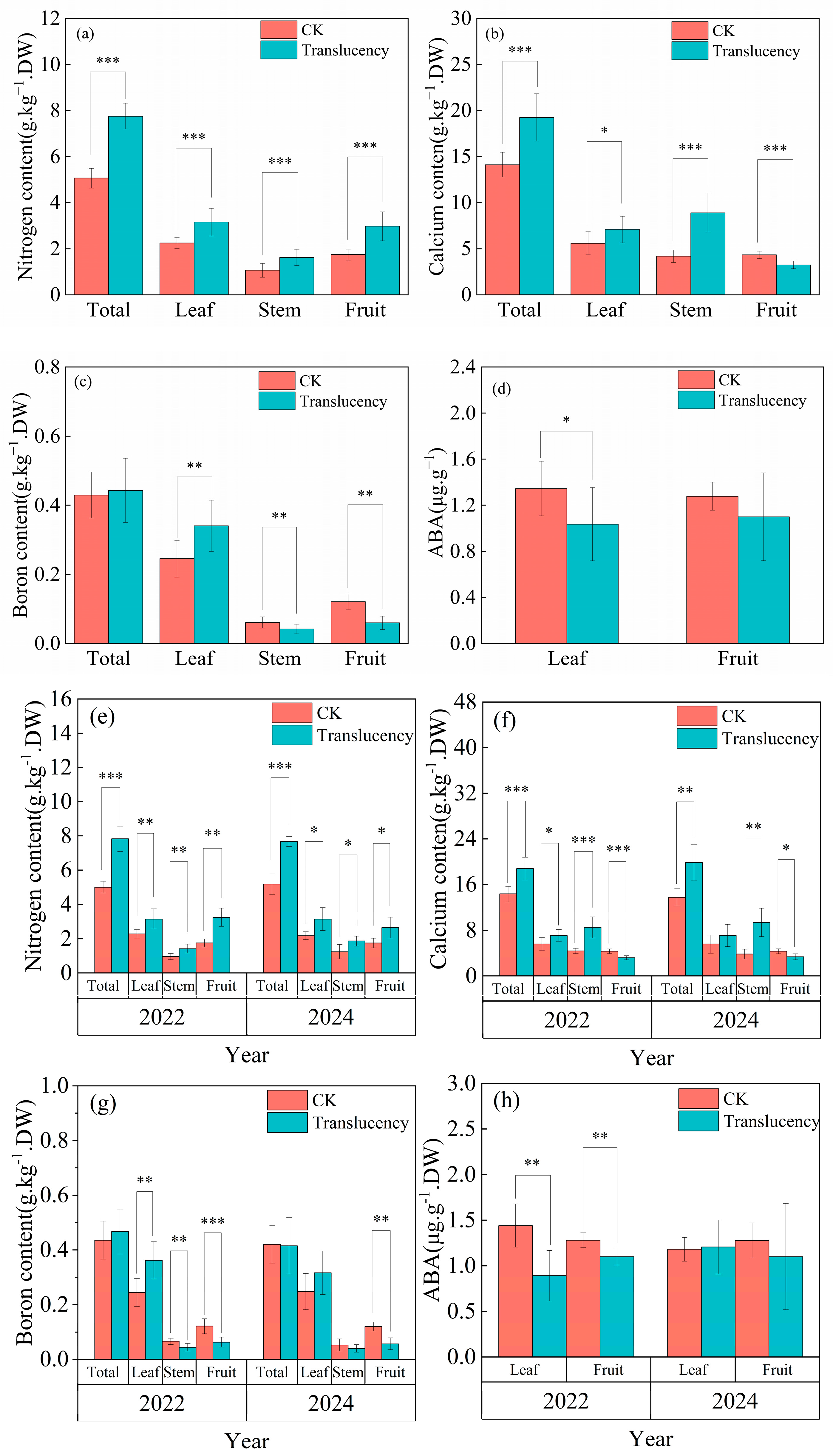 4.2. Effects of Nitrogen Status on Translucency Occurrence