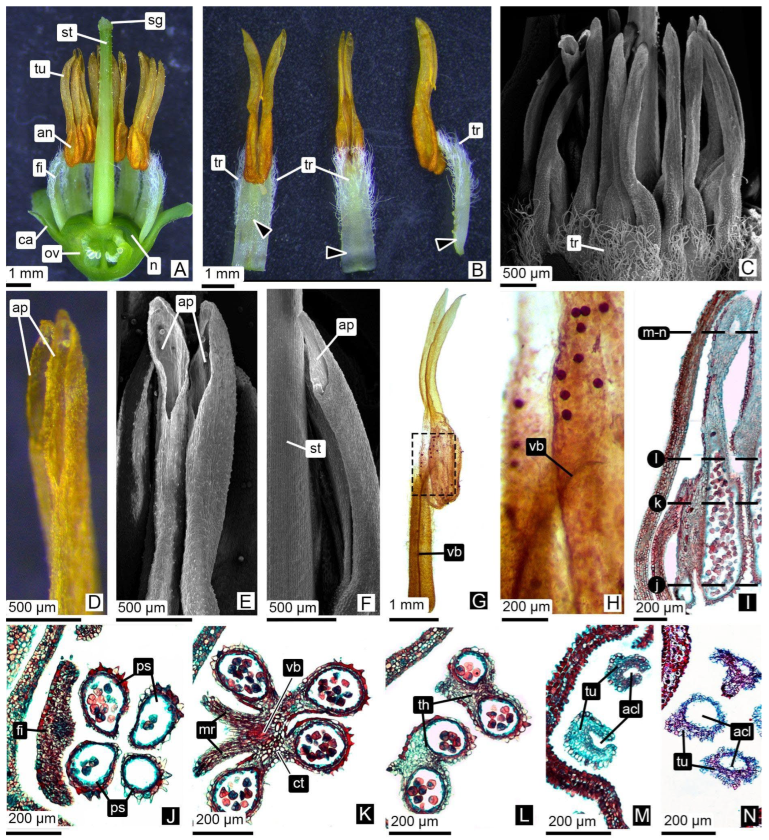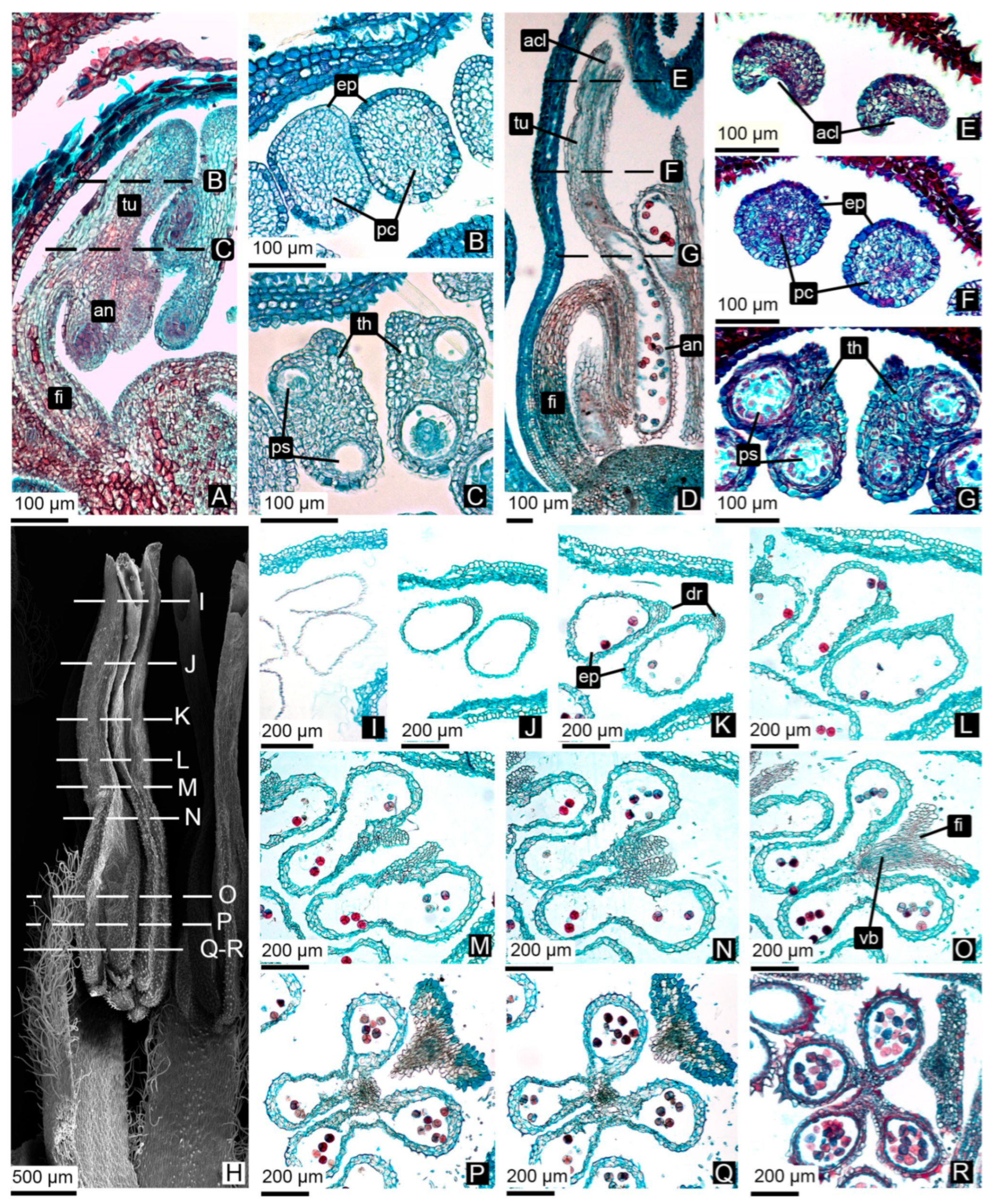 3.2. Androecium Ontogeny: Morphological and Anatomical Insights