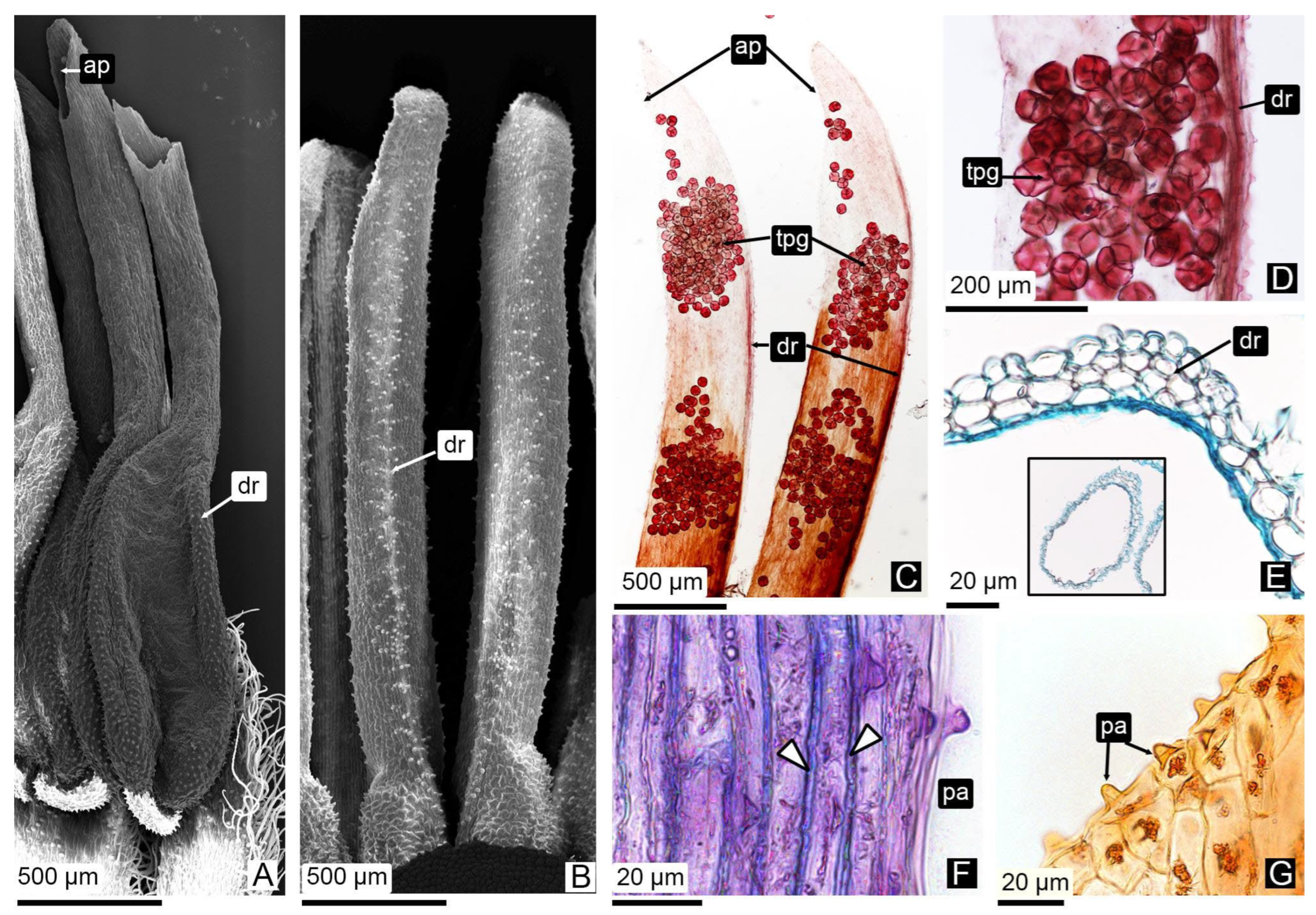 - D’arcy, W.G.; Keating, R.C.; Buchmann, S.L. The Calcium Oxalate Package or So-Called Resorption Tissue in Some Angiosperm Anthers. In The Anther: Form, Function and Phylogeny; Cambridge University Press: Cambridge, UK, 1996; pp. 159–191. ISBN 9780521480635. [Google Scholar]