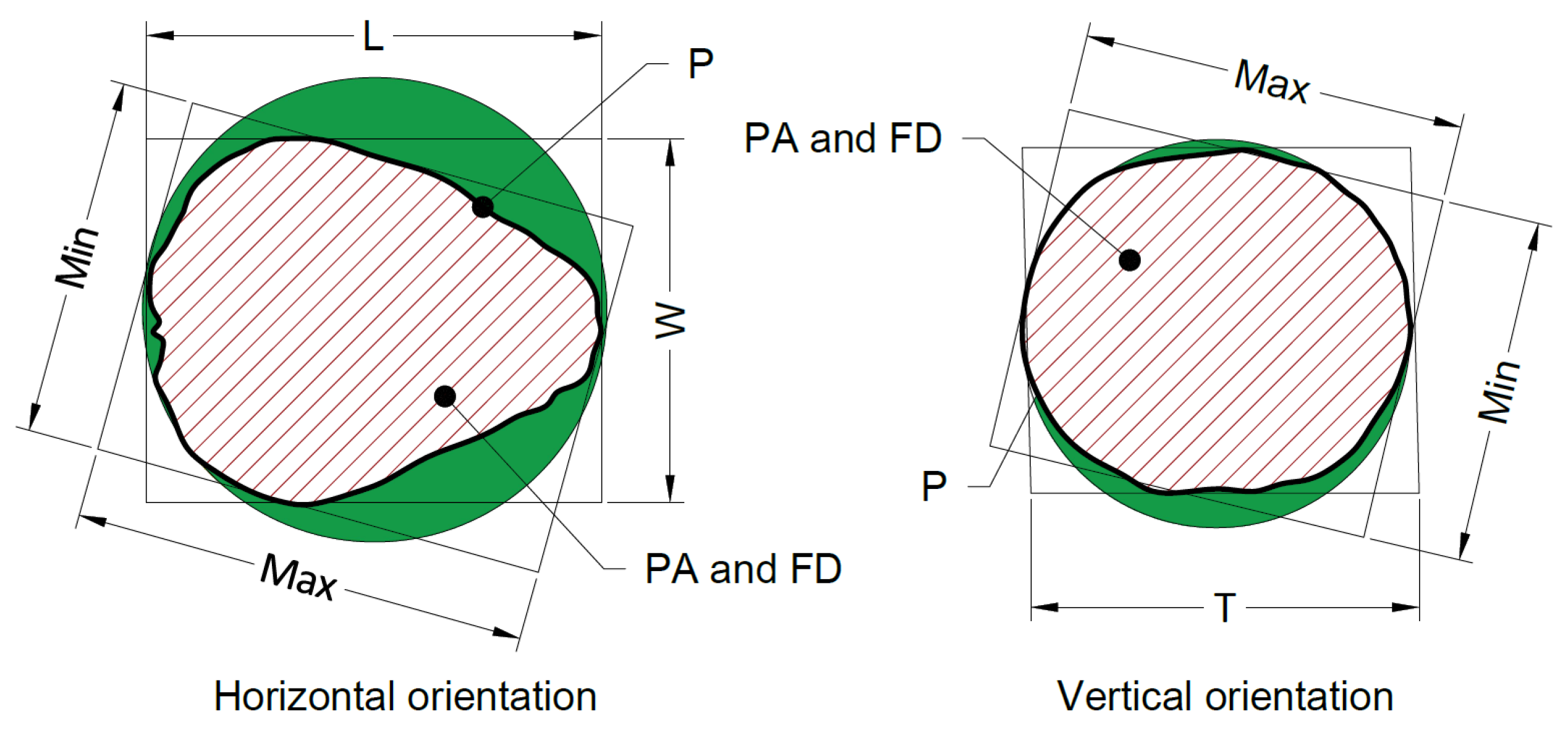 FD, mm) value was measured as maximum distance in the projection area. The roundness (