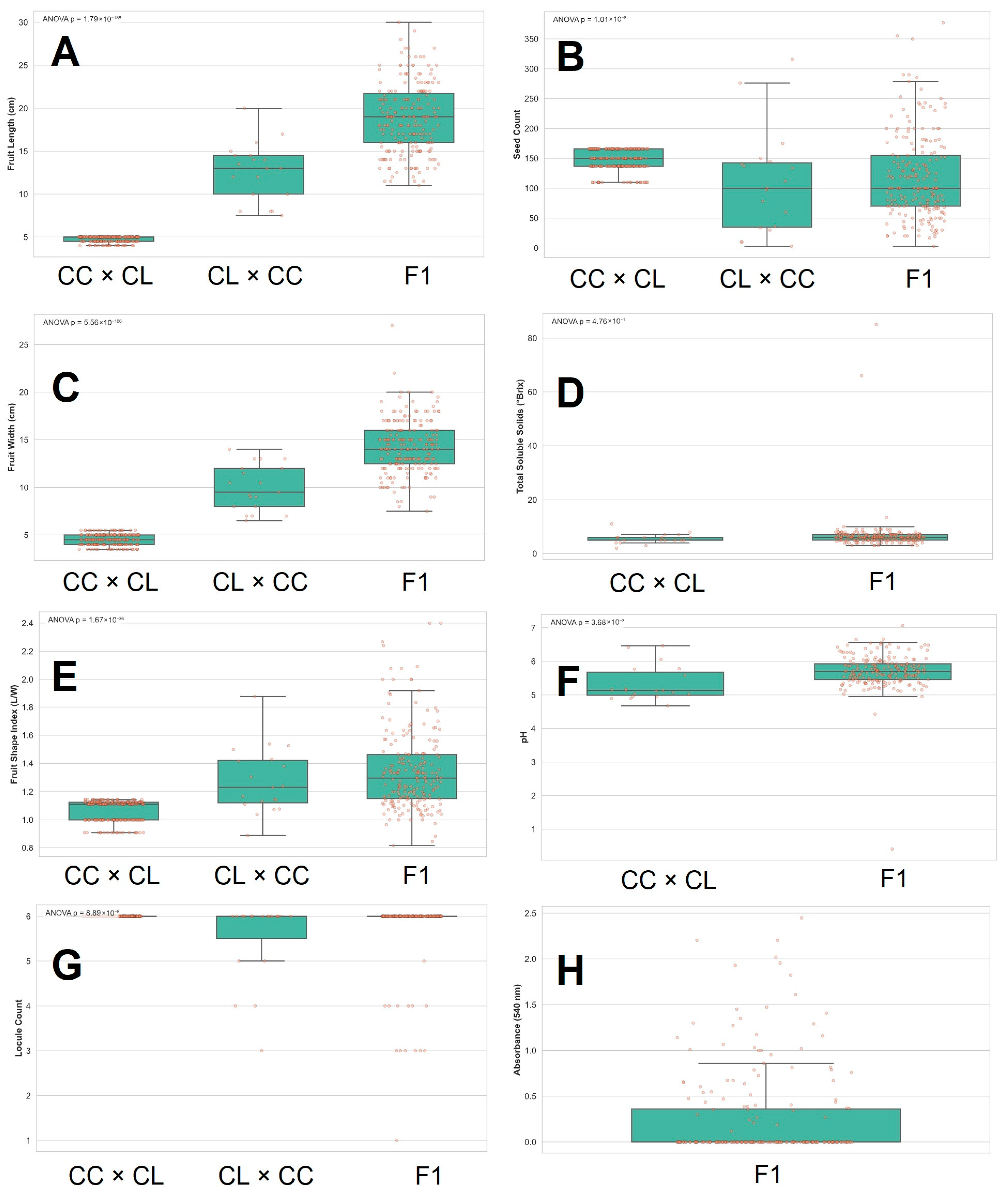 - Parihar, A.; Vaja, M.B.; Dhruve, J.J.; Rukhsar; Kumar, S. Identification of useful recombinants from interspecific hybrids of Citrullus lanatus and C. colocynthis. Vegetos 2020, 33, 475–482. [Google Scholar] [CrossRef]