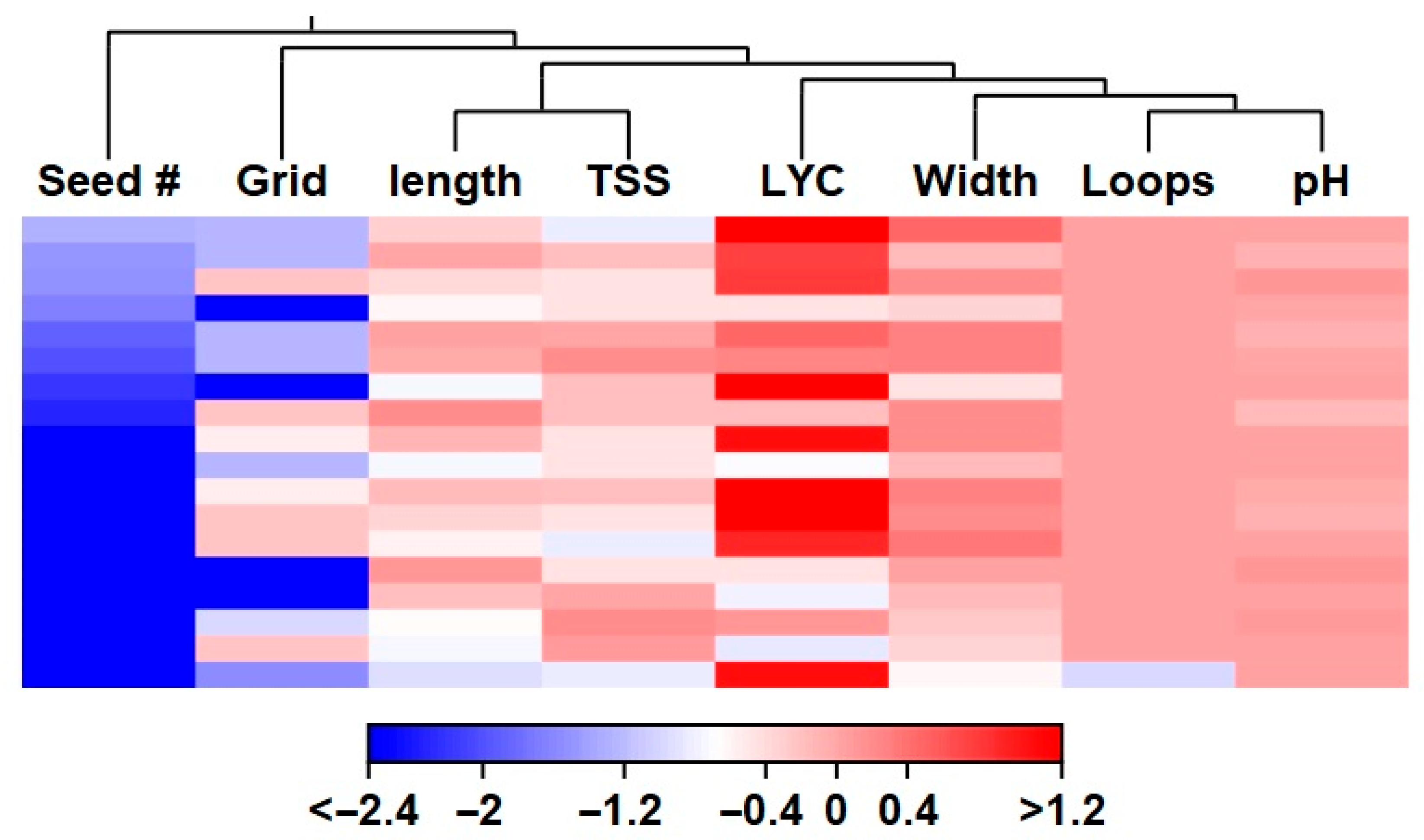 - Razifard, H.; Ramos, A.; Della Valle, A.L.; Bodary, C.; Goetz, E.; Manser, E.J.; Li, X.; Zhang, L.; Visa, S.; Tieman, D.; et al. Genomic evidence for complex domestication history of the cultivated tomato in Latin America. Mol. Biol. Evol. 2020, 37, 1118–1132. [Google Scholar] [CrossRef]