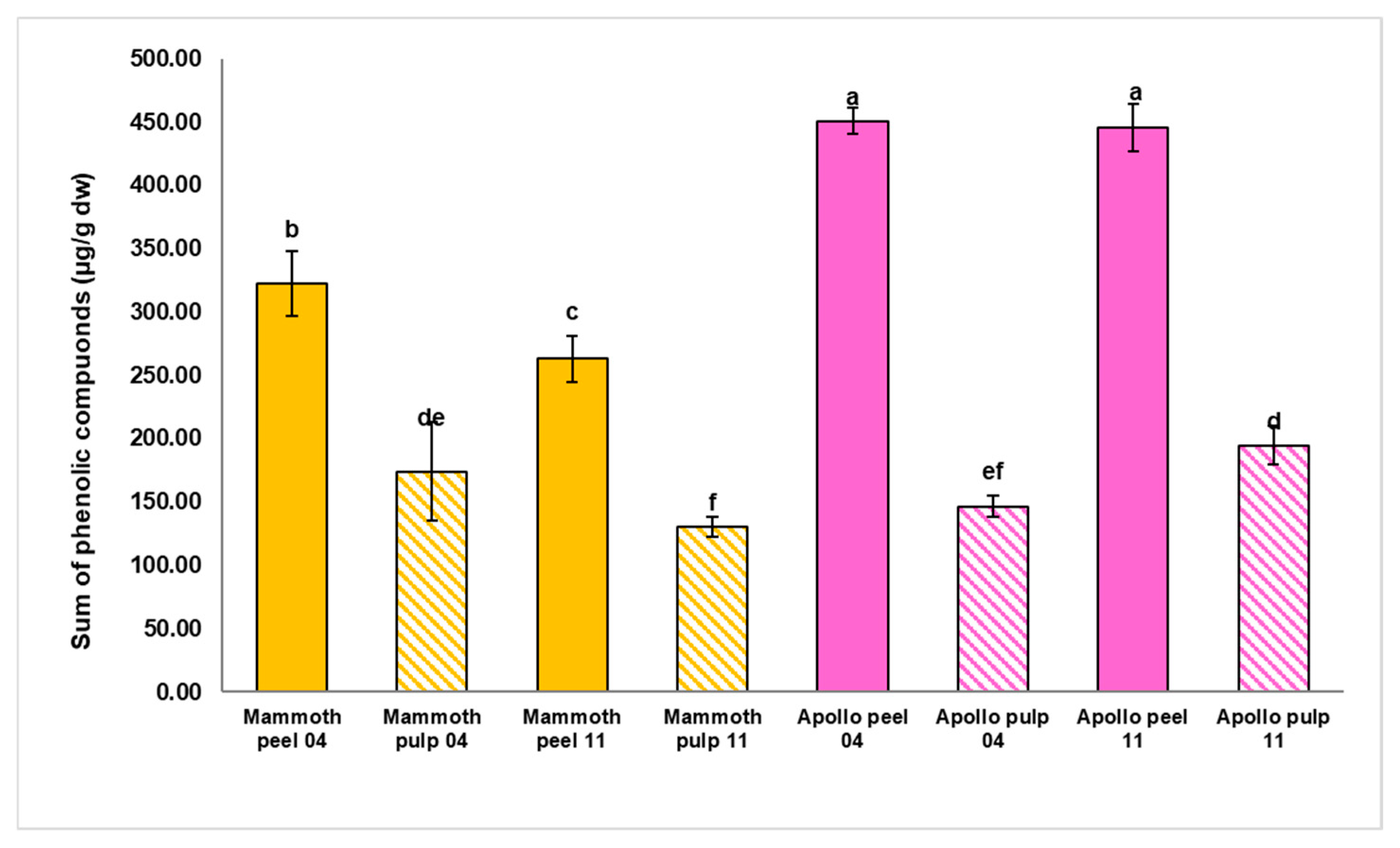 | Apollo pulp 4 | 39.17 ± 1.23 c | 30.70 ± 3.21 c | 86.06 ± 0.27 d |