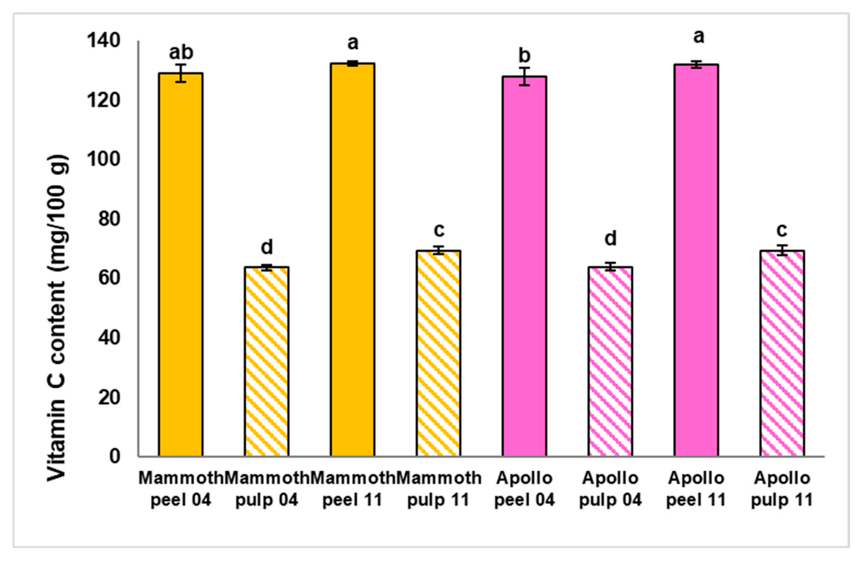 3.1. Chemical and Physical Quality Traits of the Fruit