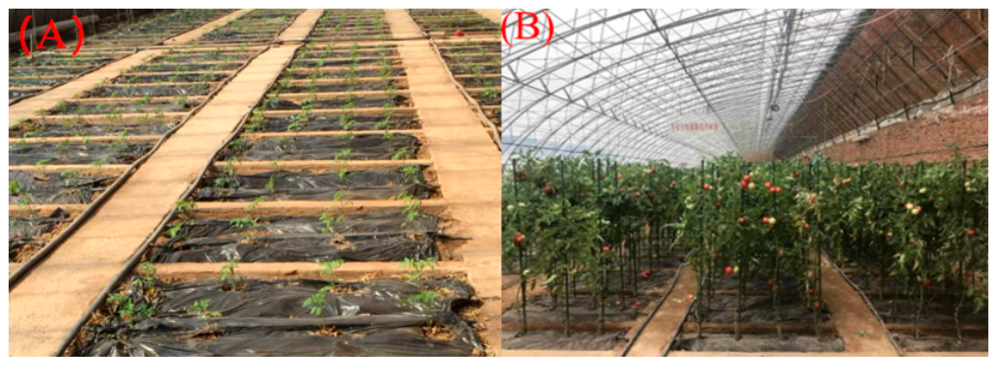 - Zhao, Y.P.; Jia, Q.; Qi, X.H. Present situation and development countermeasure of tomato production in Liaoning Province. China Veg. 2015, 10, 6–9. [Google Scholar]