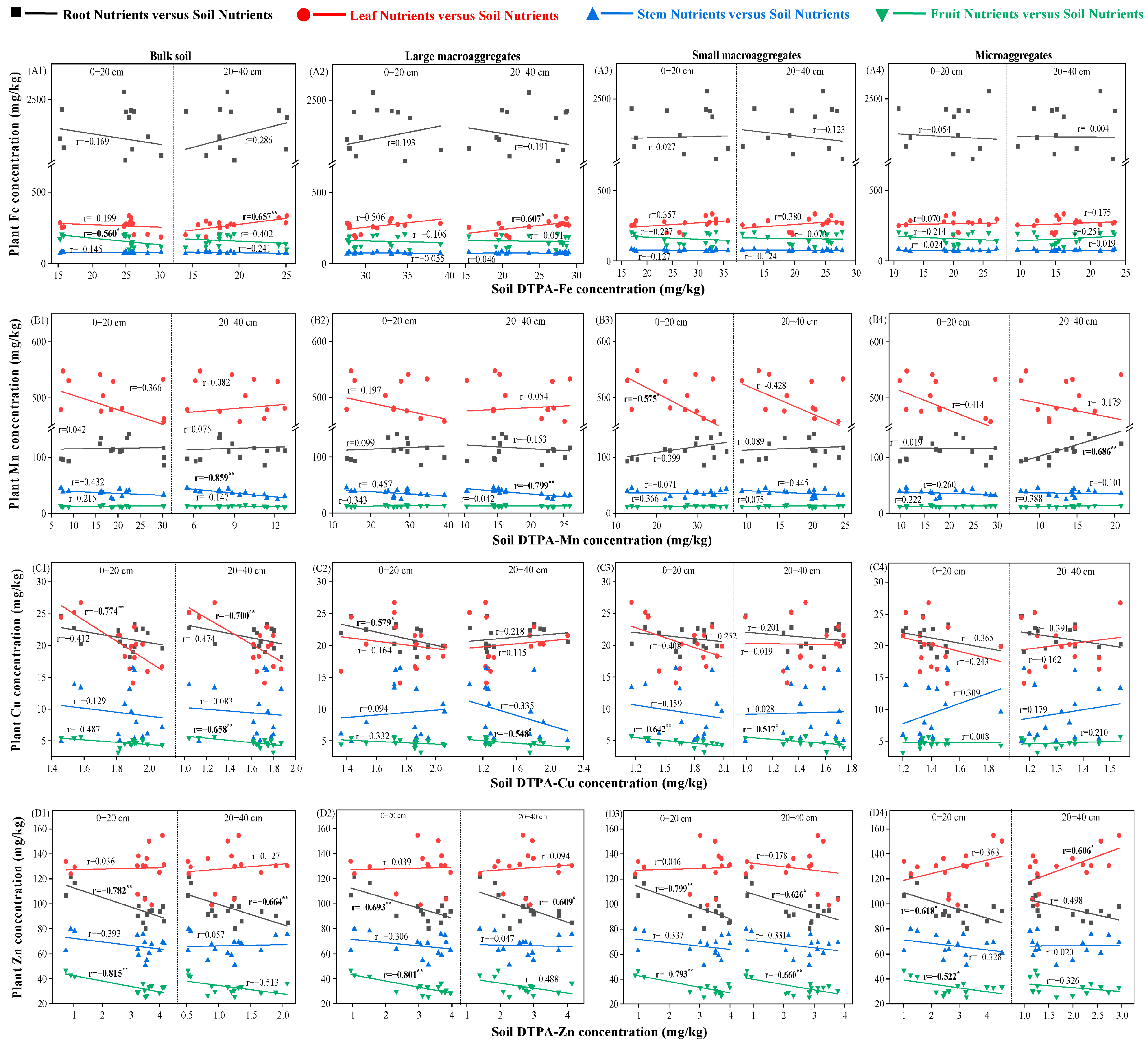 3.5. Correlations Between Plant Micronutrient Concentration and Soil Available Micronutrients