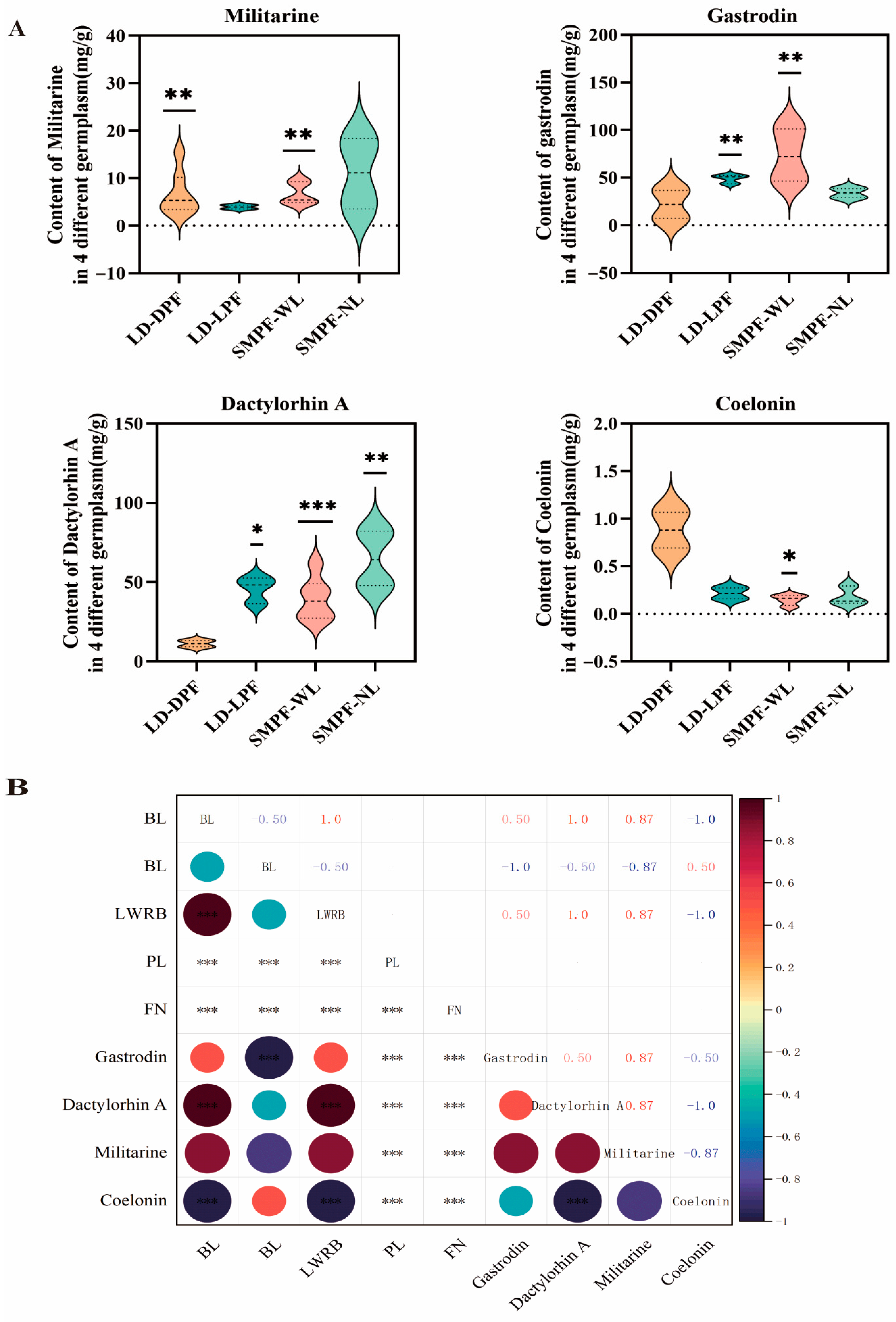 - Jia, X.; Li, Y.; Chen, L.; Xiao, Y.; Yang, N.; Luo, H.; Guan, J.; Xu, D. Identification and comparative genomic analysis of endophytic fungi in Bletilla striata and its potential for promoting militarine bioaccumulation. Fitoterapia 2025, 181, 106356. [Google Scholar] [CrossRef]