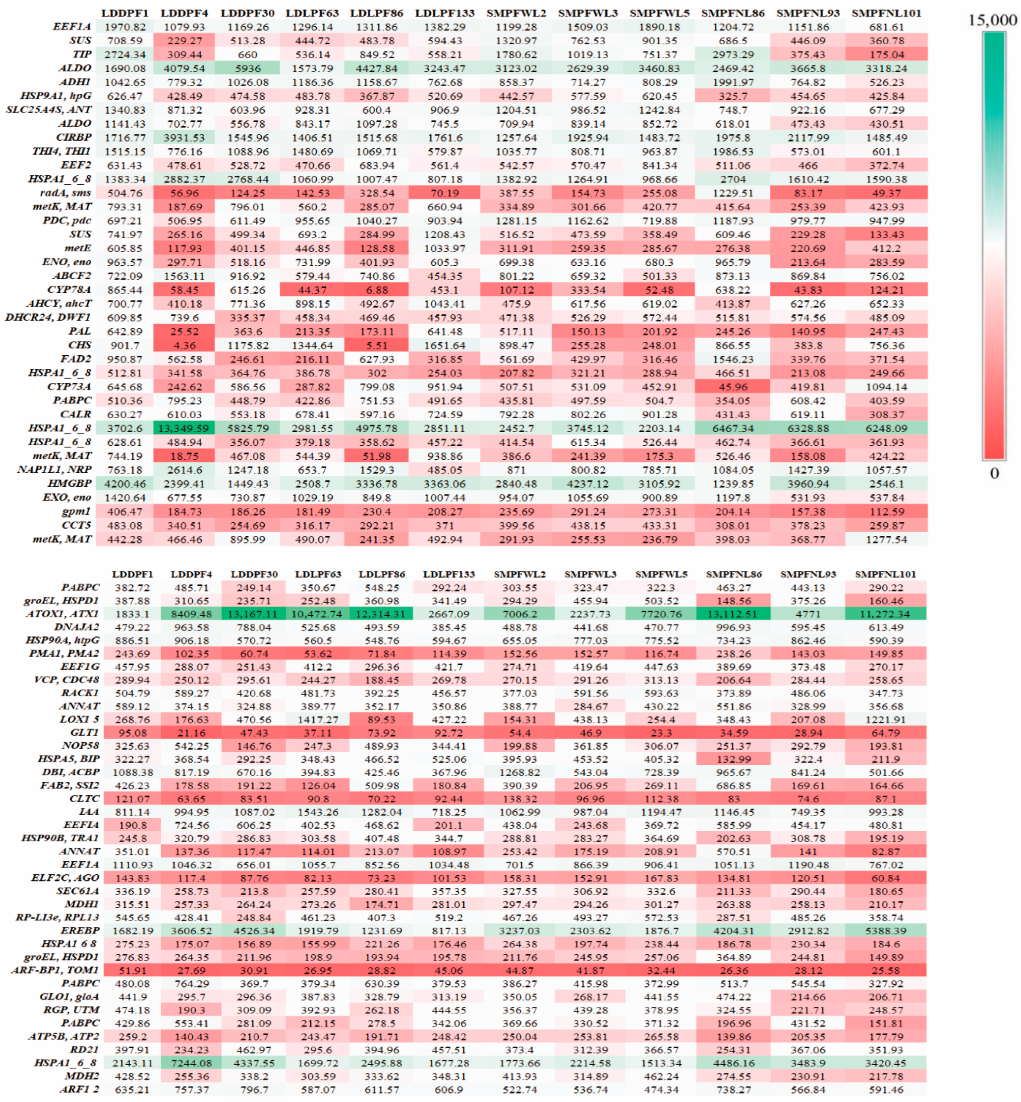 3.7. Differential Gene Analysis of Suspension Cells in Different Landraces
