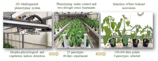 Cocozza A, Venezia A, Macellaro R, Di Cesare C, Milanesi C, Tripodi P. Leveraging Multispectral and 3D Phenotyping to Determine Morpho-Physiological Changes in Peppers Under Increasing Drought Stress Levels. Horticulturae. 2025; 11(11):1318. https://doi.org/10.3390/horticulturae11111318