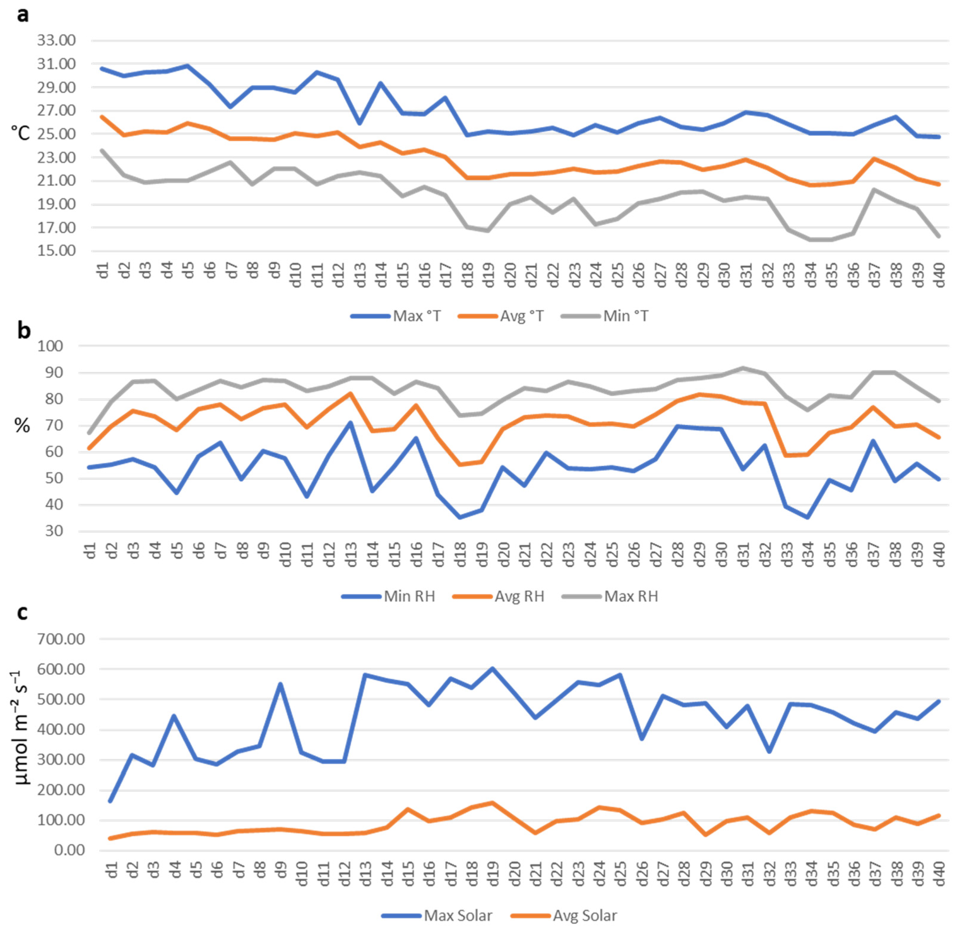 3.1. Greenhouse Climatic Conditions