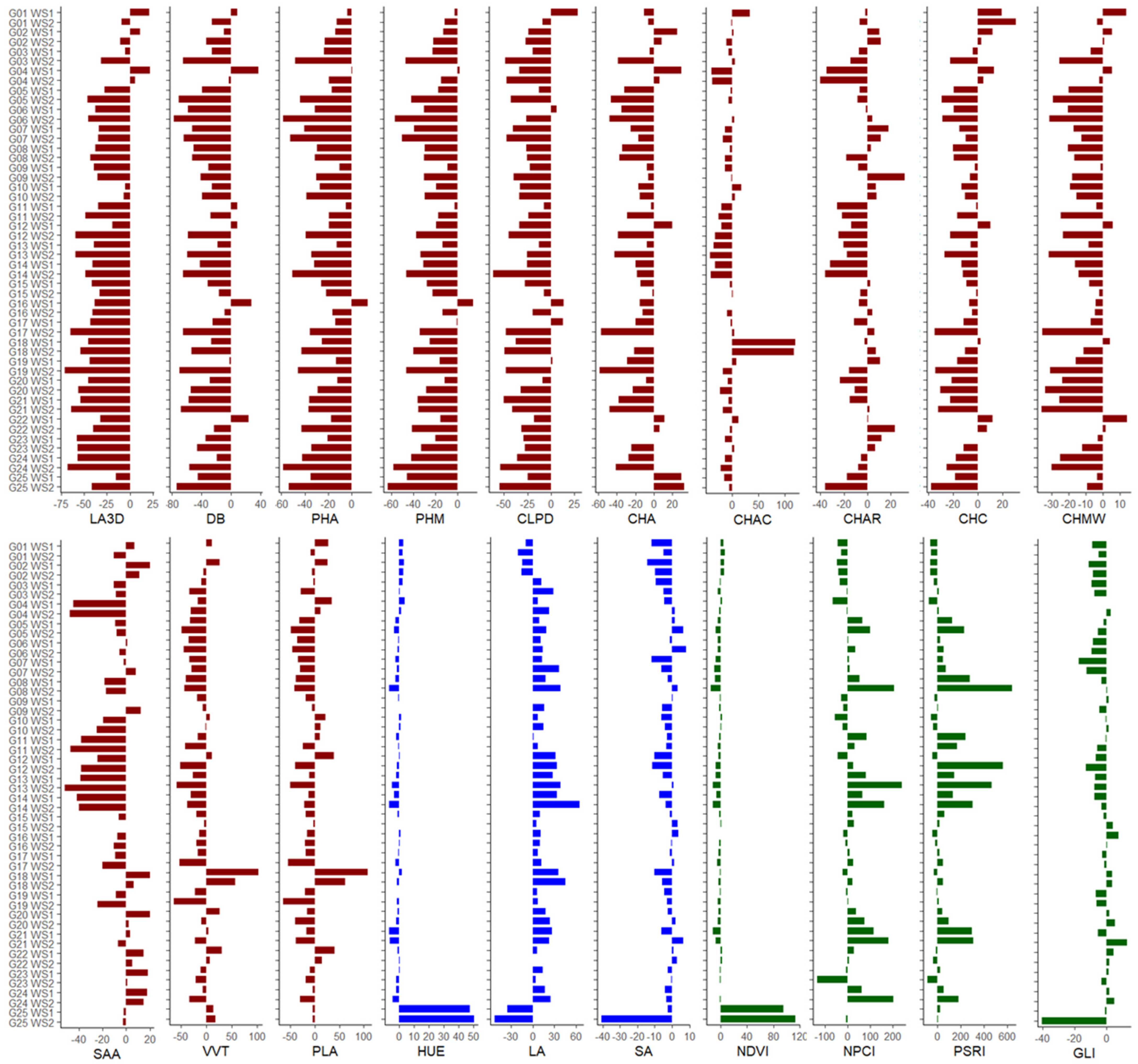 4.1. Potentiality of PhenoHort for Morpho-Physiological Traits and Stress Indices Assessment
