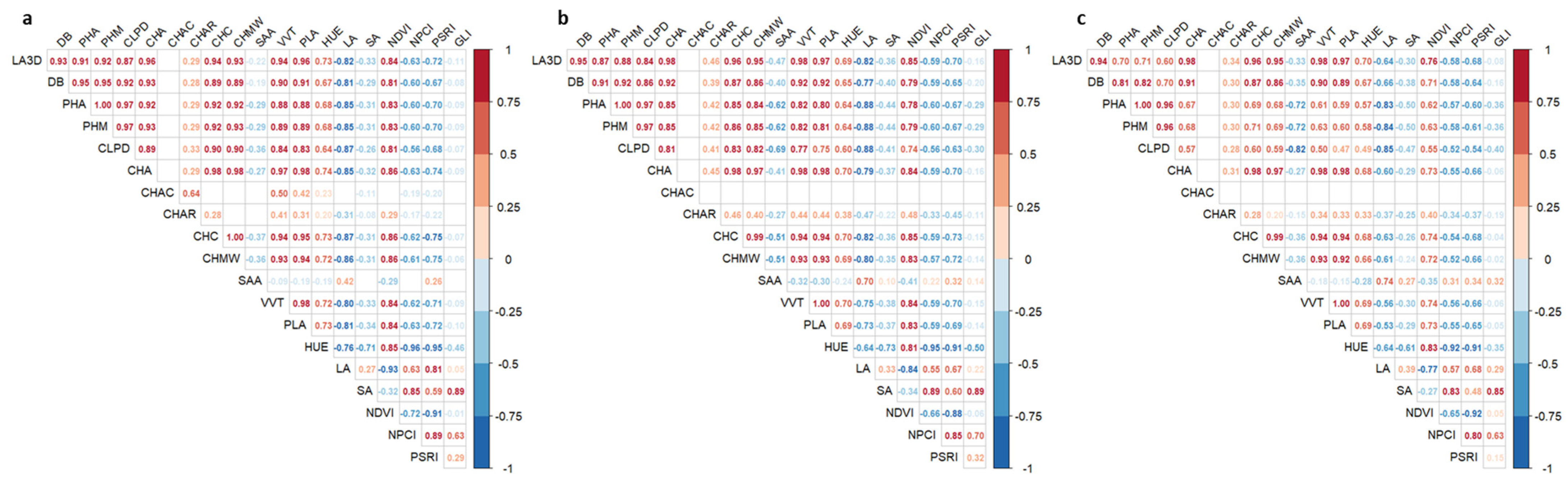 - Anderegg, J.; Yu, K.; Aasen, H.; Walter, A.; Liebisch, F.; Hund, A. Spectral Vegetation Indices to Track Senescence Dynamics in Diverse Wheat Germplasm. Front. Plant Sci. 2020, 10, 1749. [Google Scholar] [CrossRef]