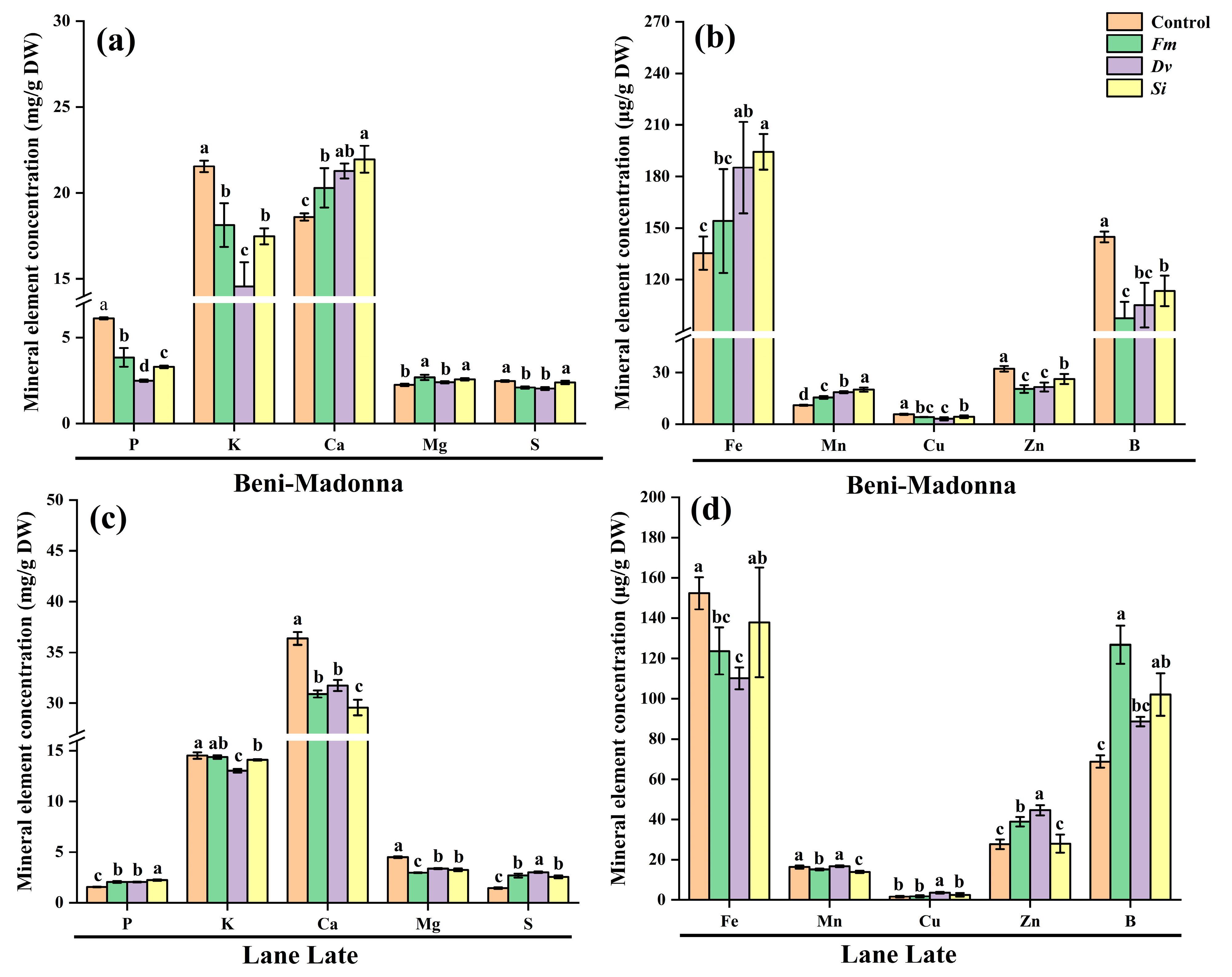 3.5. Effects of Fungal Inoculation on Leaf Mineral Element Concentrations of Citrus