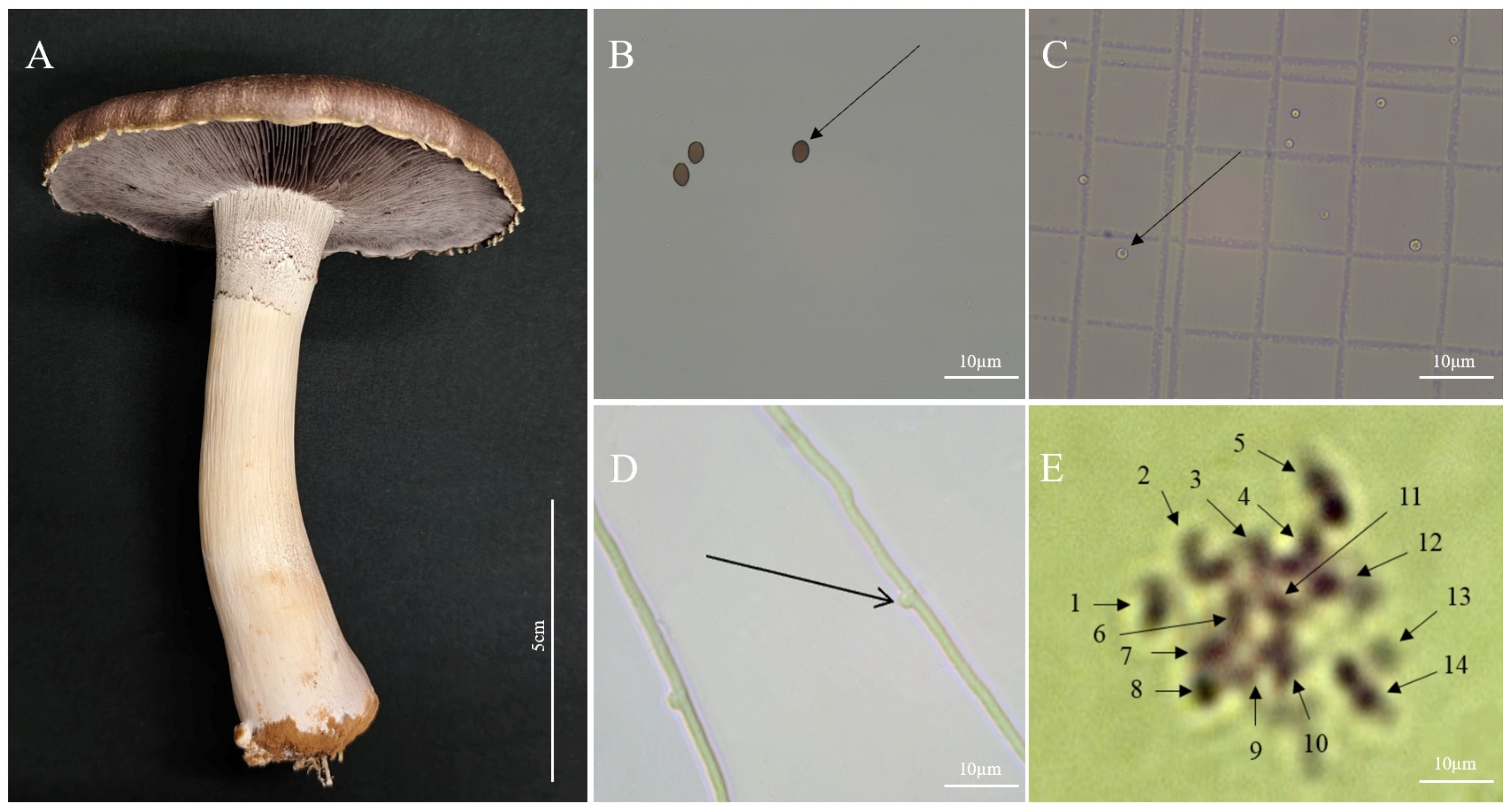 - Zhou, F.; Yang, H.L.; Zhao, Y.; Jiang, S.X.; Chen, M.J.; Li, Z.P.; Cha, L.; Li, Y. Characteristics of mononuclear properties and the protoplast monokaryogenesis of different varieties of Stropharia rugosoannulata. Acta Agric. Shanghai 2023, 39, 33–37. (In Chinese) [Google Scholar] [CrossRef]