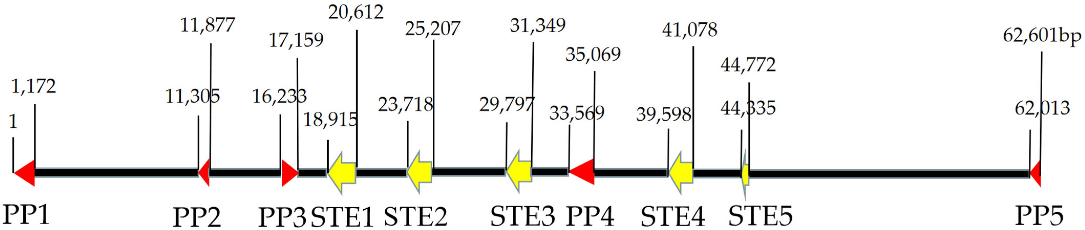 - Koressaar, T.; Lepamets, M.; Kaplinski, L.; Raime, K.; Andreson, R.; Remm, M. Primer3_masker: Integrating masking of template sequence with primer design software. Bioinformatics 2018, 34, 1937–1938. [Google Scholar] [CrossRef]