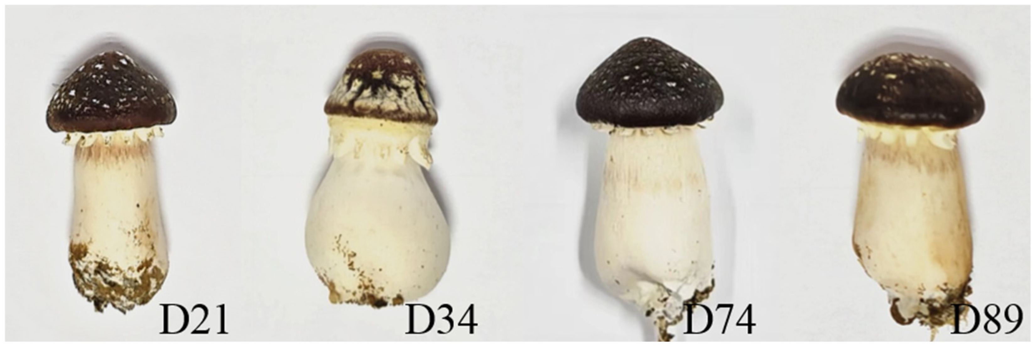 - Shen, M.; Yan, J.; Wang, R.S.; Quan, X.H.; Yuan, Y.; Yao, X.T.; Jin, Q.L. Molecular mechanisms and horticultural implications of temperature-induced color variation in Stropharia rugosoannulata mushrooms. Food Chem. Mol. Sci. 2025, 11, 100276. [Google Scholar] [CrossRef]