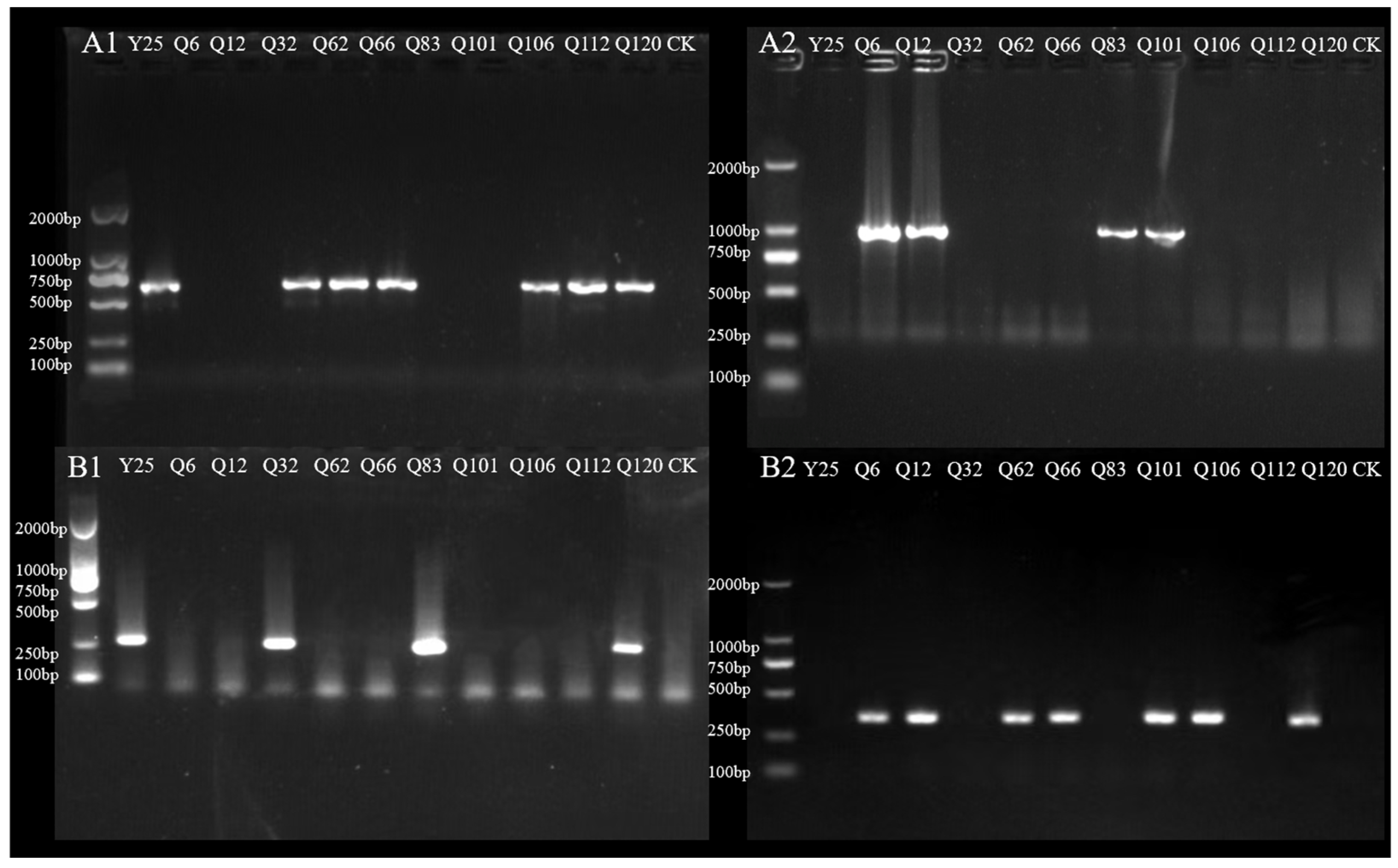 | A2F1 | CATTGTTGCCAGCGAGGAC | A2R1-4 | ATGATGGTCCCAATACCCGA | 58 °C |