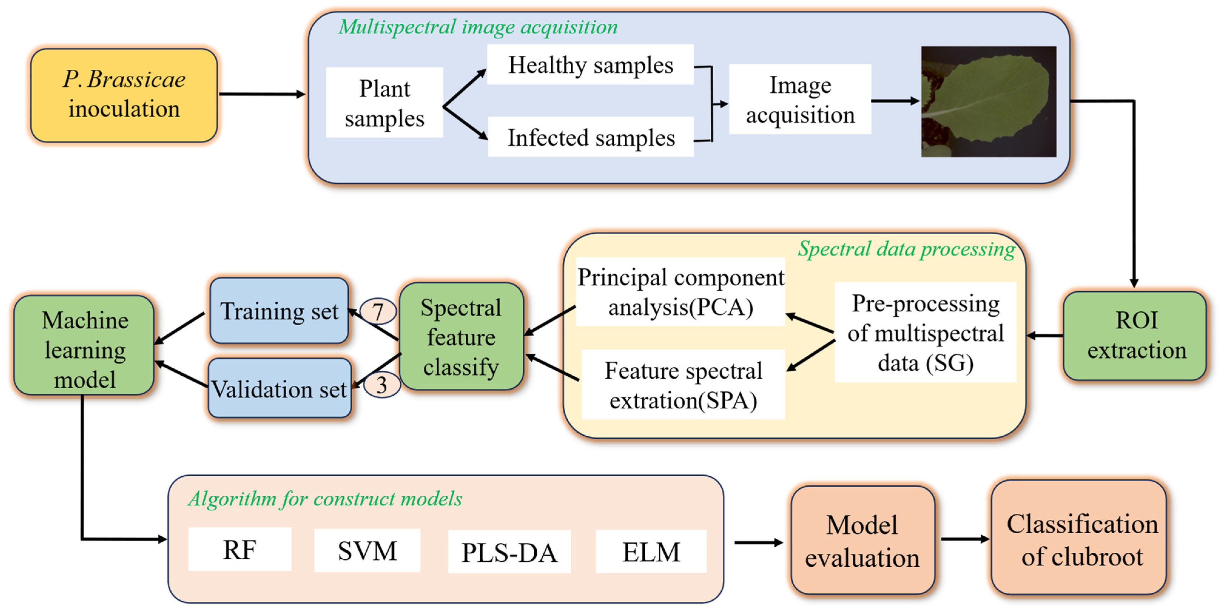 Jiao Z, Zhang D, Zhang J, Wang L, Ma D, Ma L, Wang Y, Gu A, Fan X, Peng B, et al. Early Detection of Chinese Cabbage Clubroot Based on Integrated Leaf Multispectral Imaging and Machine Learning. Horticulturae. 2025; 11(11):1335. https://doi.org/10.3390/horticulturae11111335