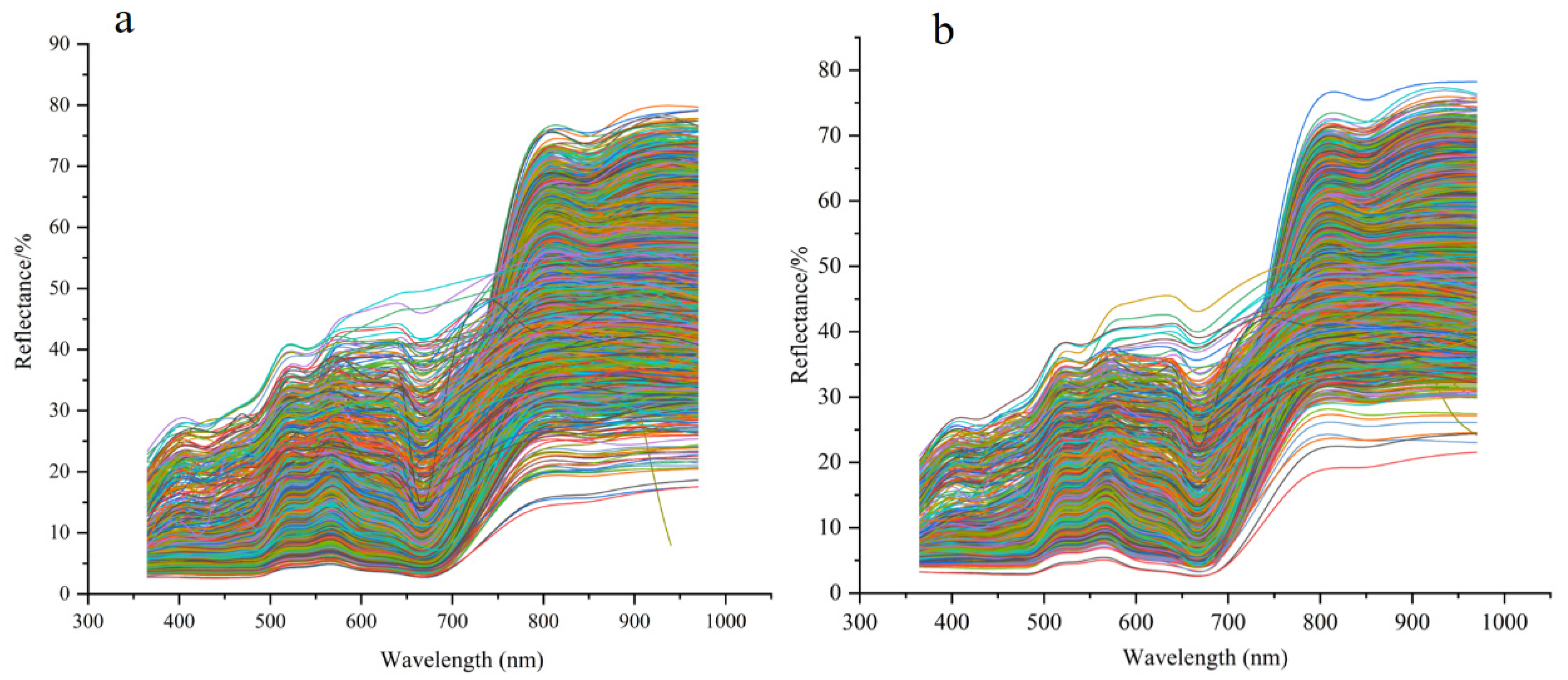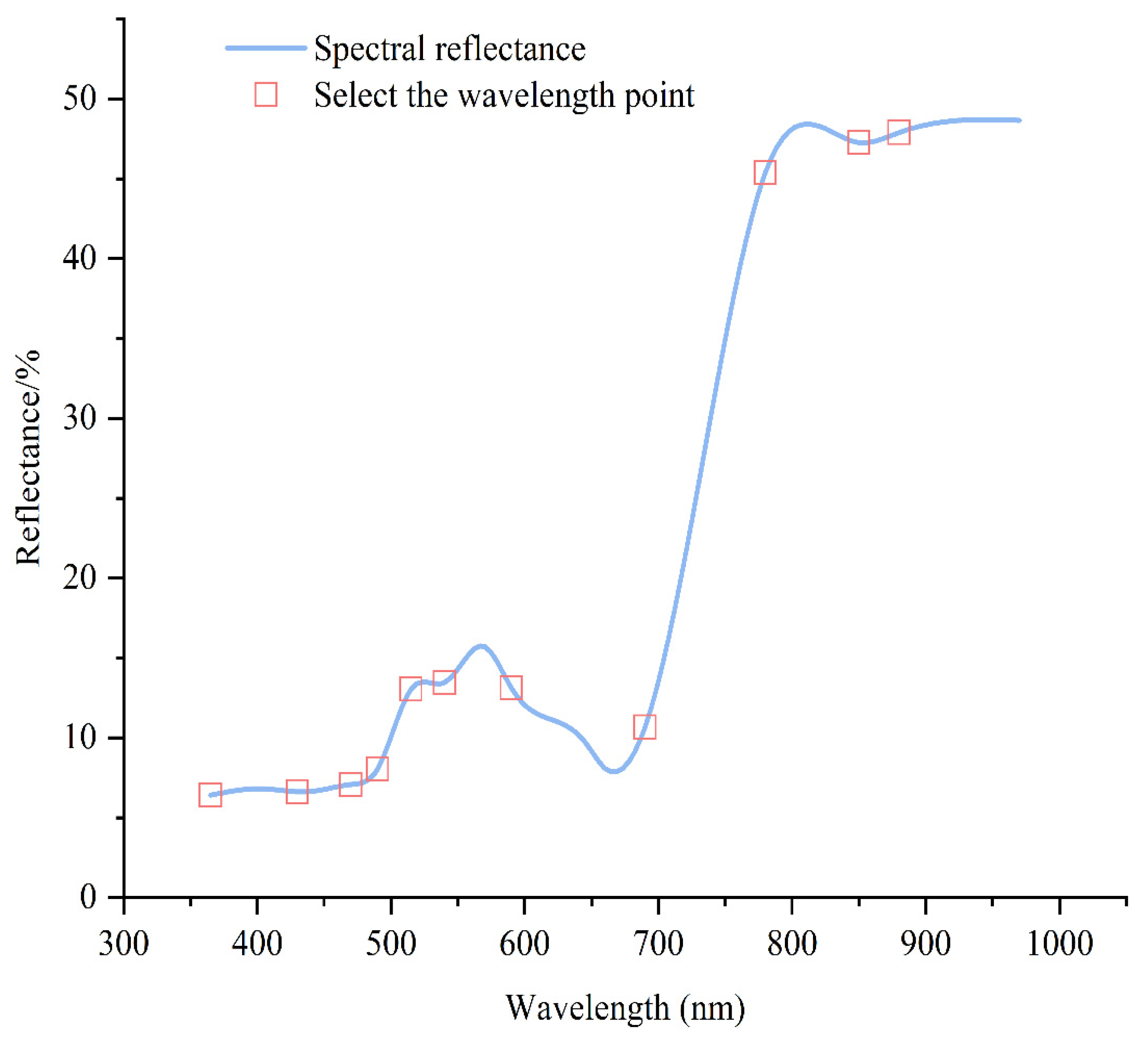 3.2. Multispectral Preprocess and Characteristic Wavelength Extraction
