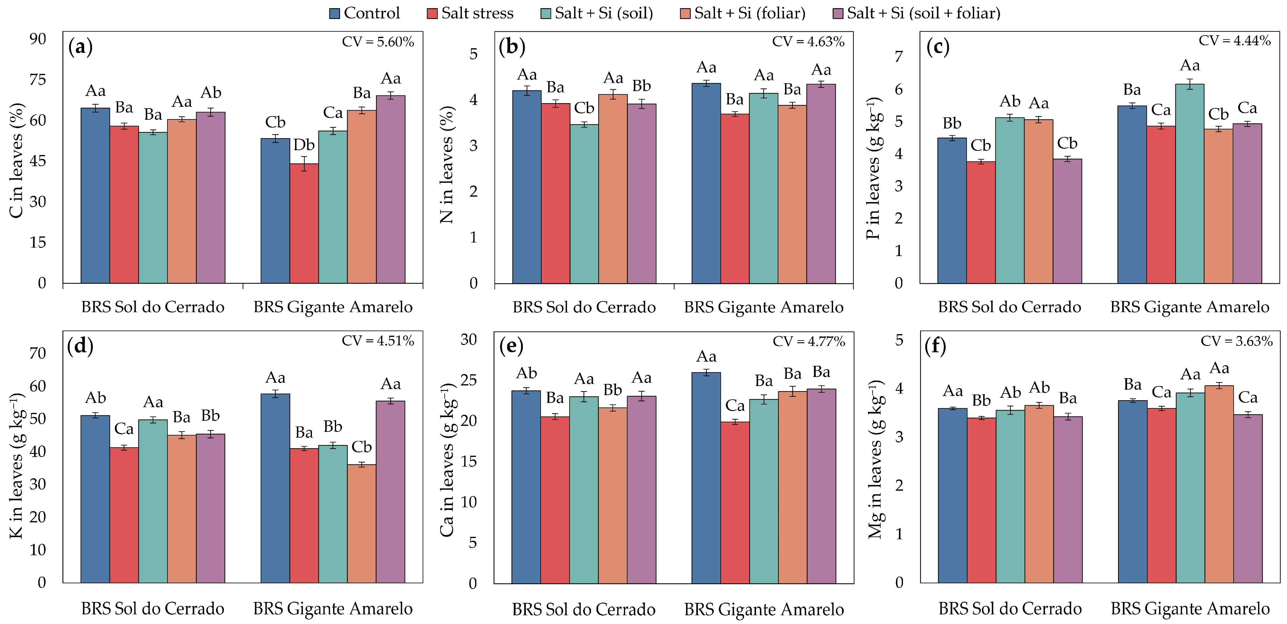 - Dutra, A.F.; Leite, M.R.L.; Melo, C.C.F.; Amaral, D.S.; Silva, J.L.F.; Prado, R.M.; Piccolo, M.S.; Miranda, R.S.; Silva Júnior, G.B.; Sousa, T.K.S.A.; et al. Soil and Foliar Si Fertilization Alters Elemental Stoichiometry and Increases Yield of Sugarcane Cultivars. Sci. Rep. 2023, 13, 16040. [Google Scholar] [CrossRef] [PubMed]
