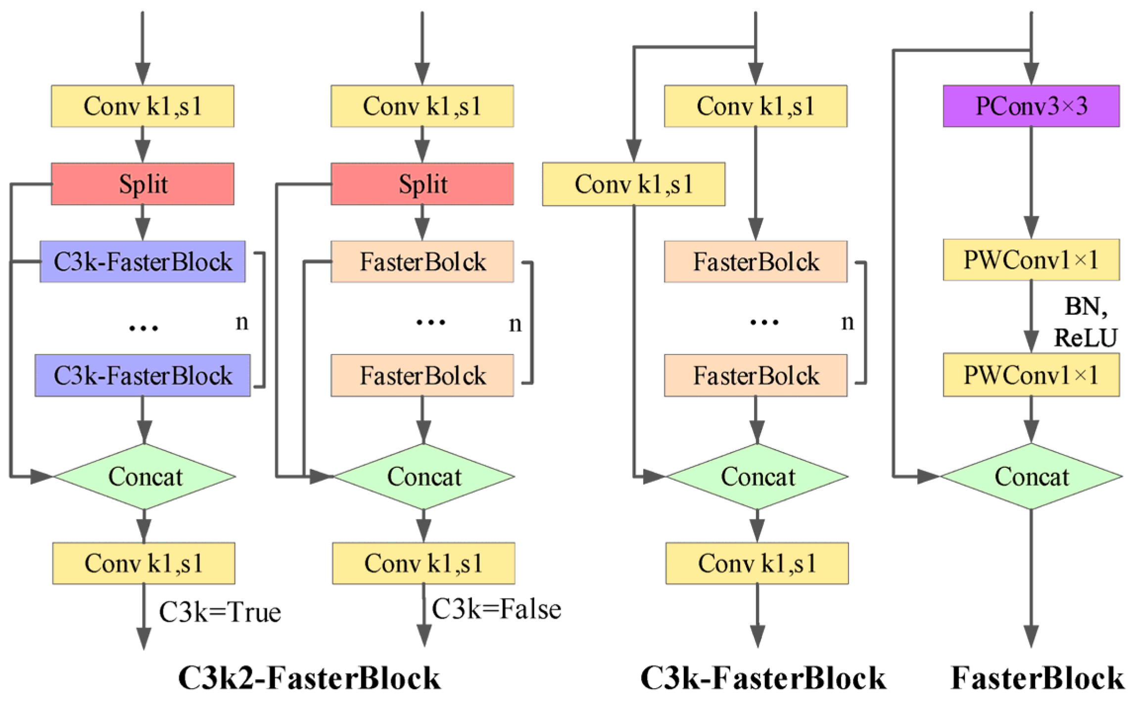 2.3.2. Incorporation of C3k2-FasterBlock Lightweight Feature Extractor into Neck