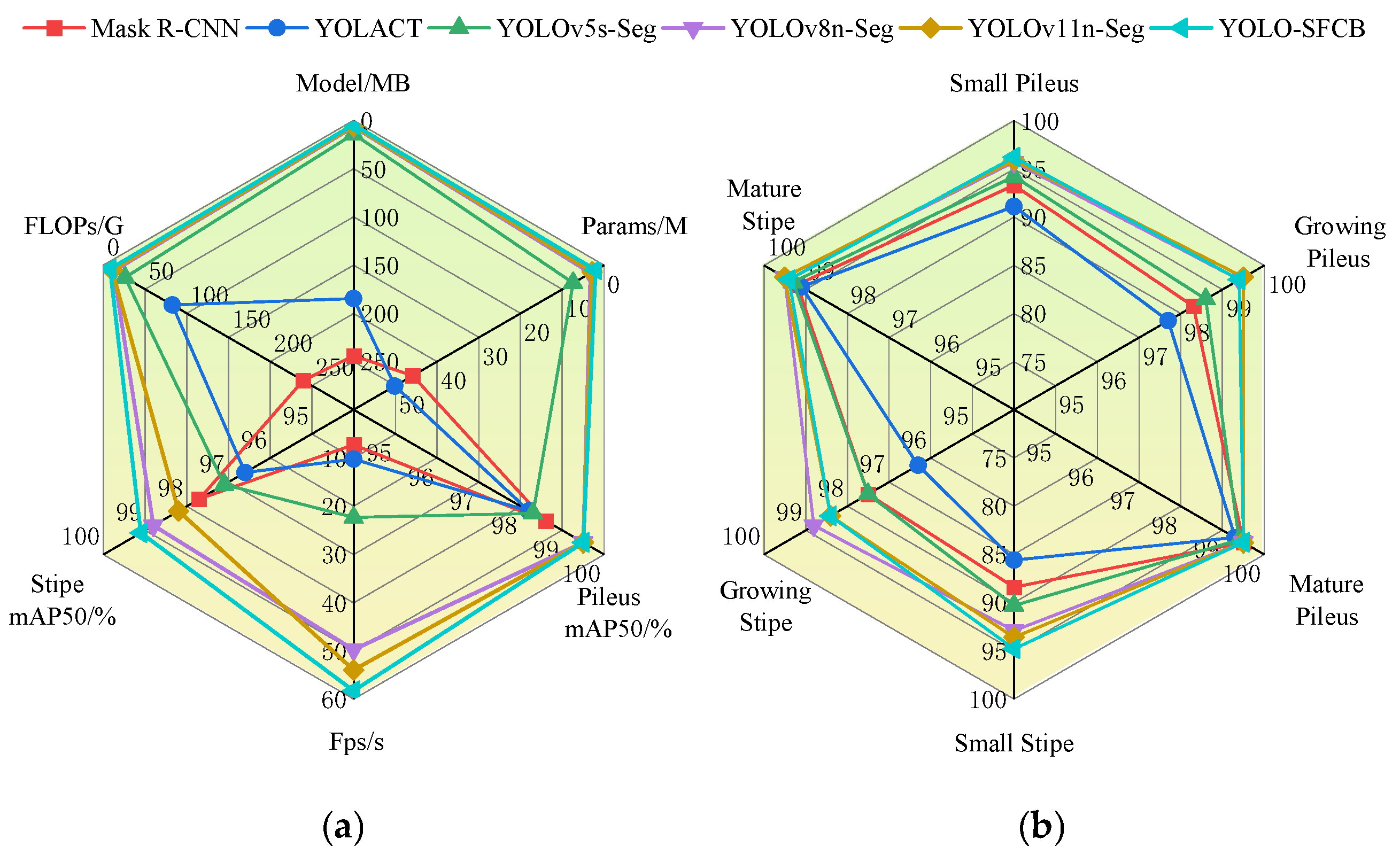 In order to further explore the recognition and segmentation performance of the improved YOLO-SFCB model on the fruiting body of