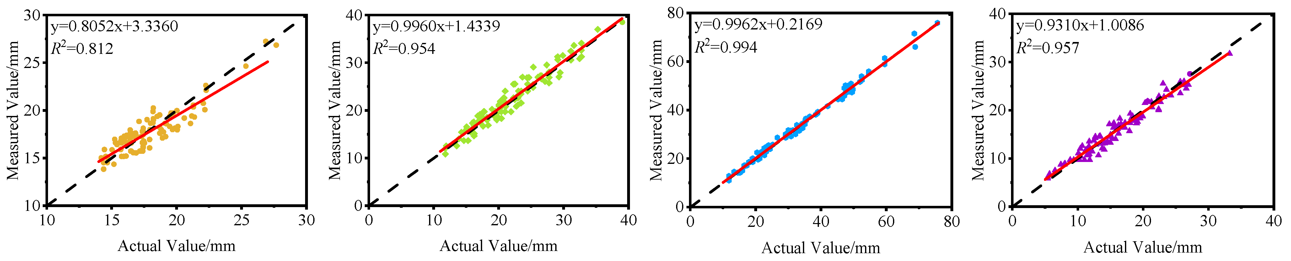 3.6. Pixel-Physical Length Ratio Fitting Results
