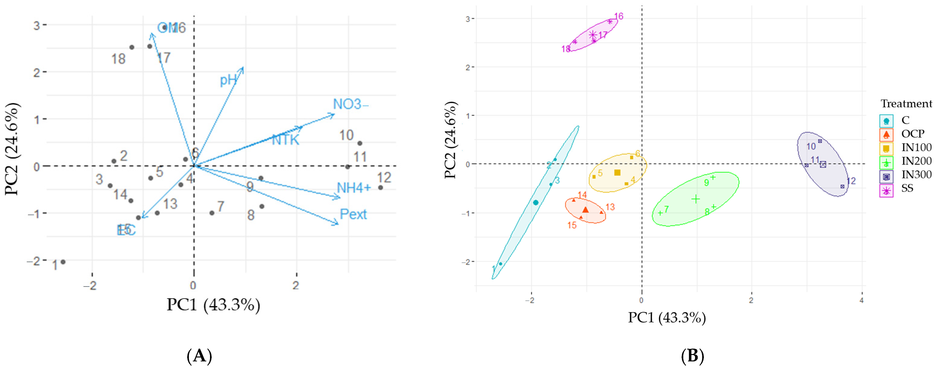 - Bremner, J.M.; Mulvaney, C.S. Nitrogen-Total. In Methods of Soil Analysis; John Wiley & Sons Ltd.: Hoboken, NJ, USA, 1983; pp. 595–624. ISBN 978-0-89118-977-0. [Google Scholar]