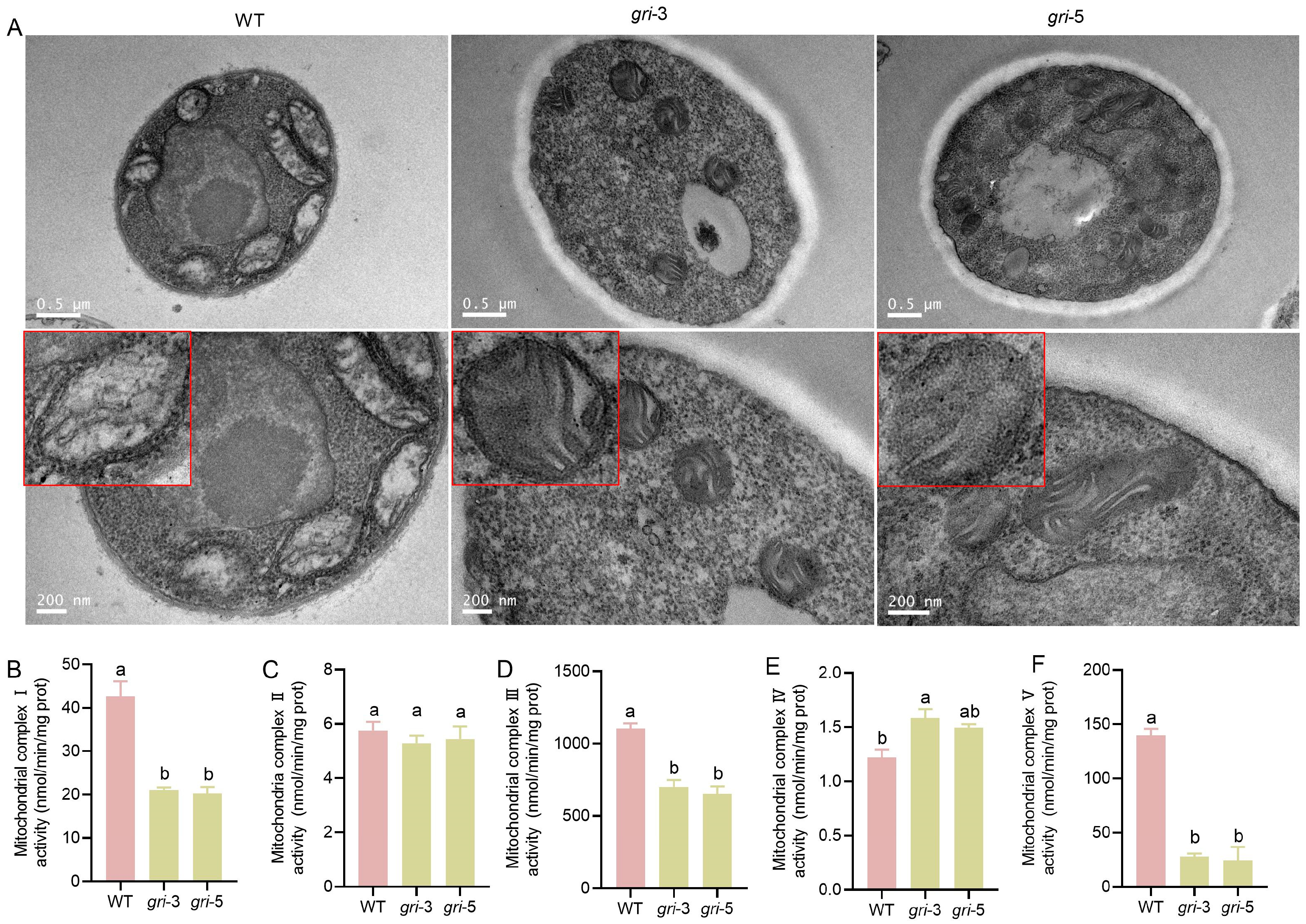 3.2. The gr Gene Disrupts Mitochondrial Structure and Suppresses the Activity of Key Respiratory Complexes in H. marmoreus