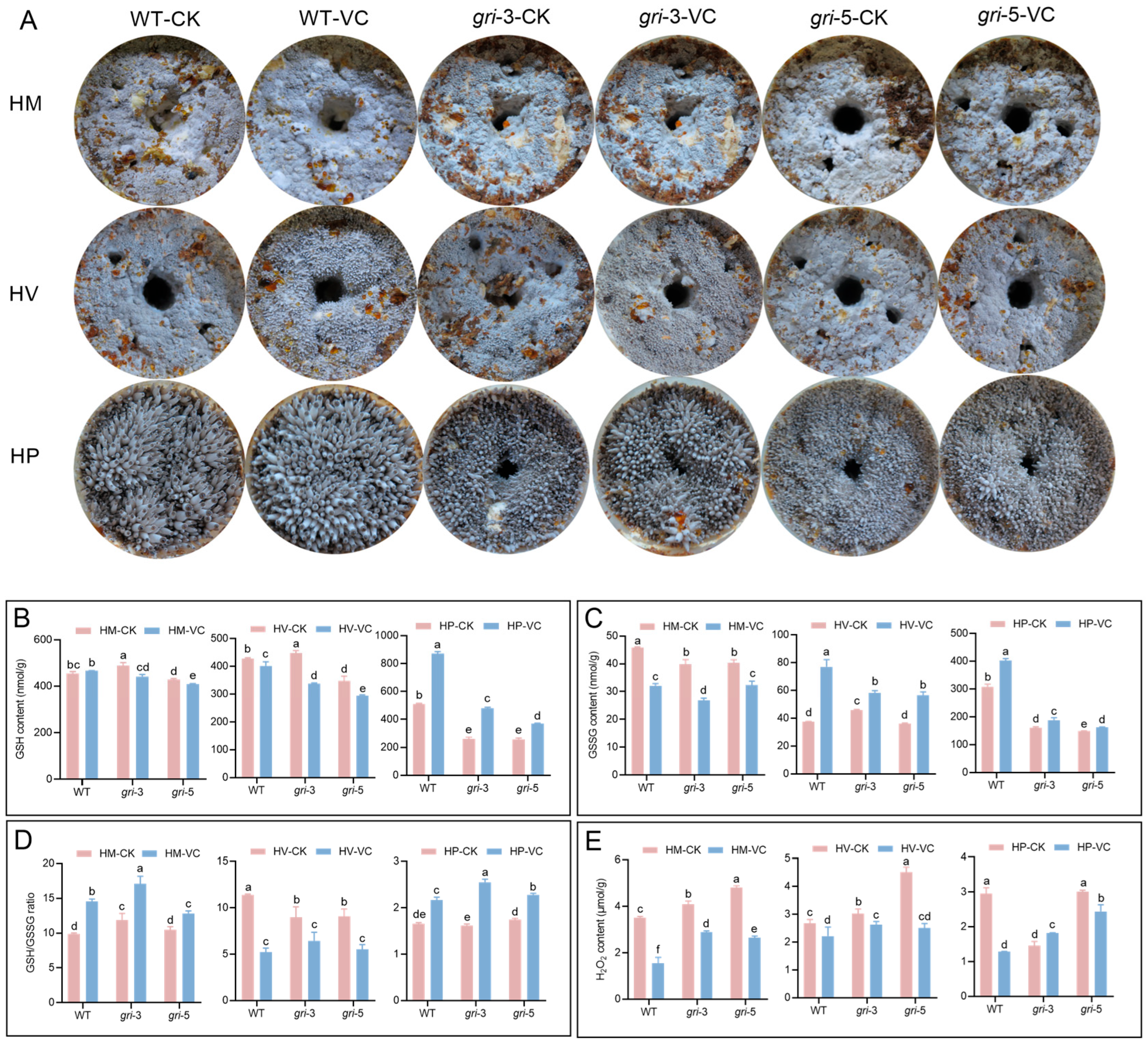 APA StyleHao, H., Zhang, Y., Wang, Q., Xiao, T., Yue, Y., Zhang, J., & Chen, H. (2025). Glutathione Reductase Affects Hyphal Growth and Fruiting Body Development by Regulating Intracellular ROS Levels in Hypsizygus marmoreus. Horticulturae, 11(12), 1441. https://doi.org/10.3390/horticulturae11121441