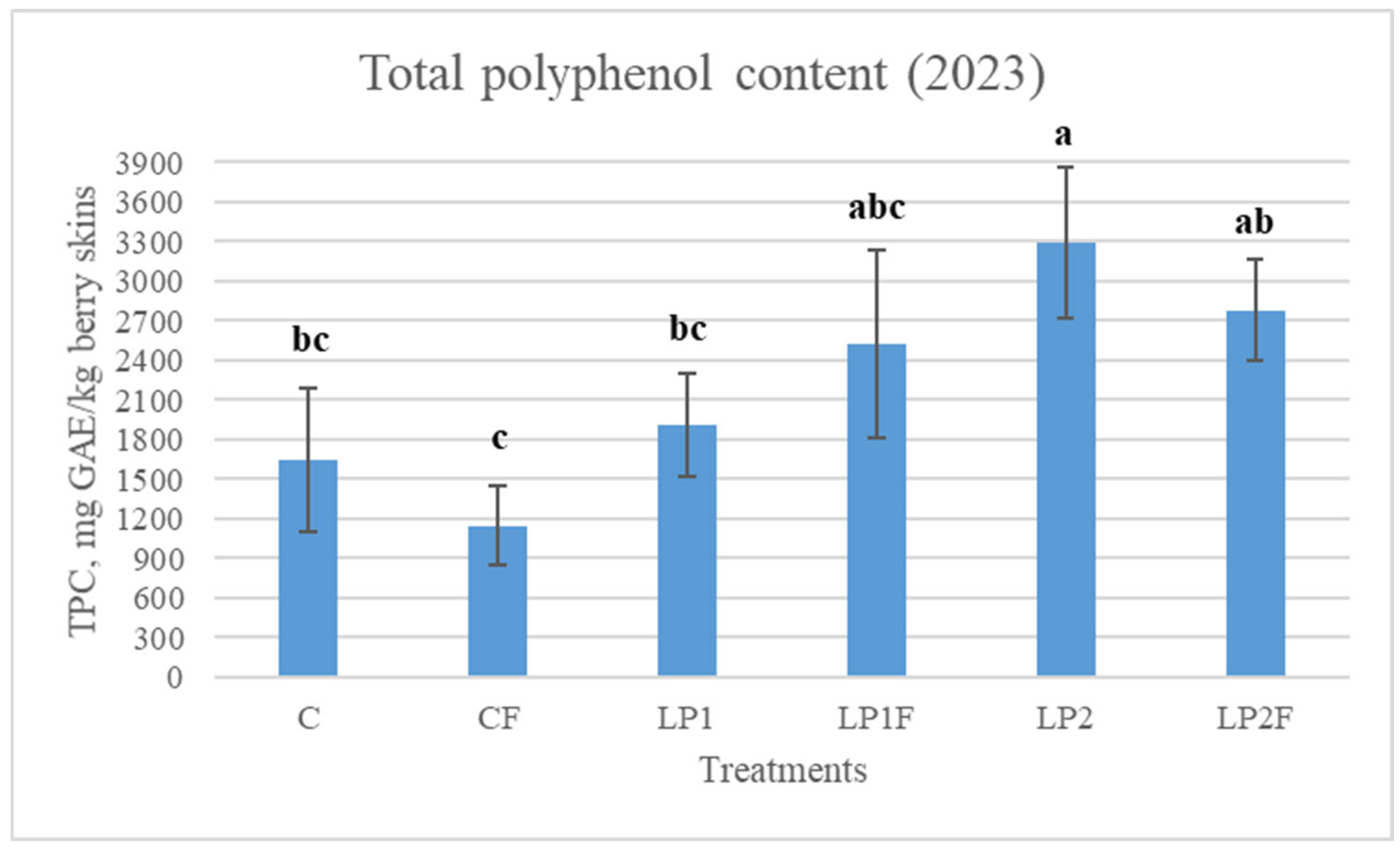 2.9. Extraction of Grape Skins for Total Polyphenol (TPC) Assay
