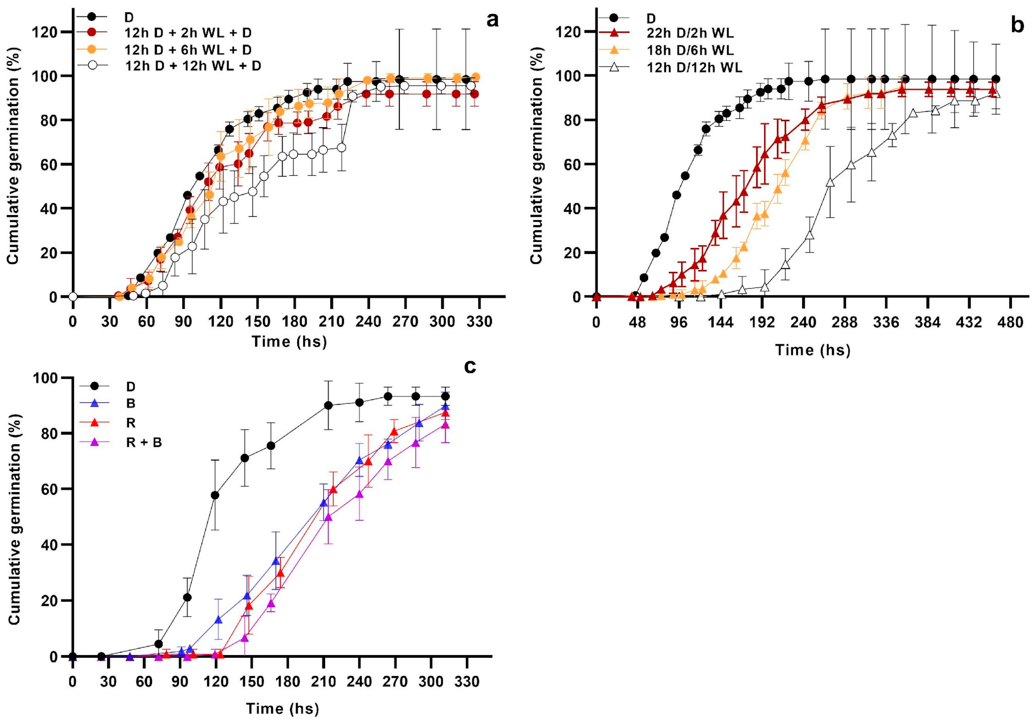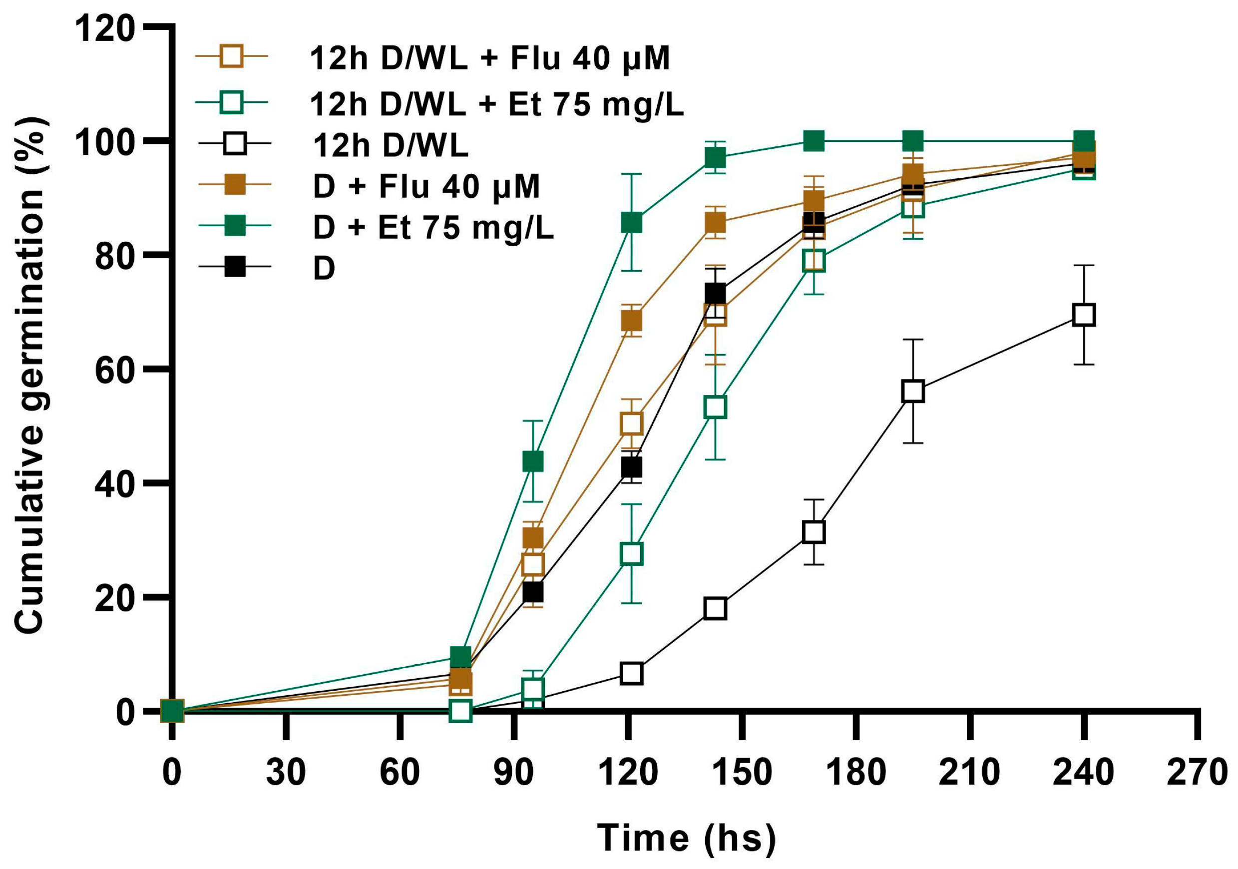APA StyleAcosta, M. C., Alcaraz, M. L., Theumer, M. G., Mary, V. S., & Causin, H. F. (2025). Light and High Temperature Negatively Regulate Germination Dynamics of Zephyranthes tubispatha Seeds. Horticulturae, 11(12), 1453. https://doi.org/10.3390/horticulturae11121453