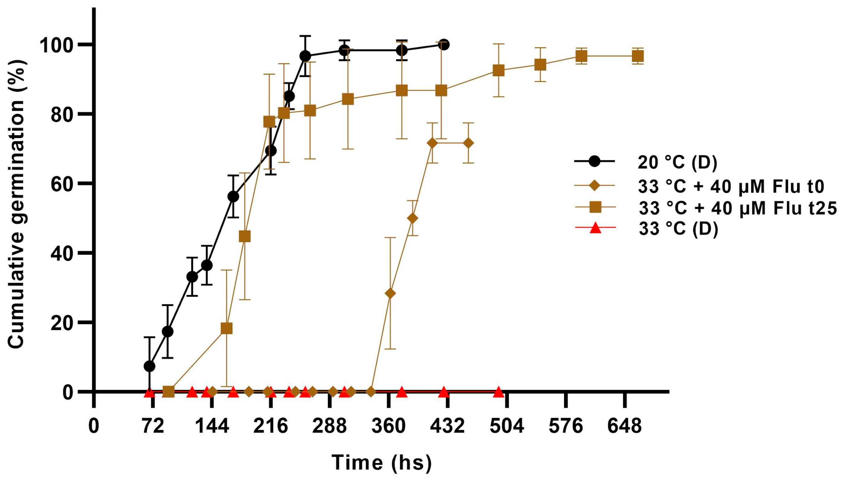 4.2. Exposure to High Temperatures Condition Germination Responses to Light Cues