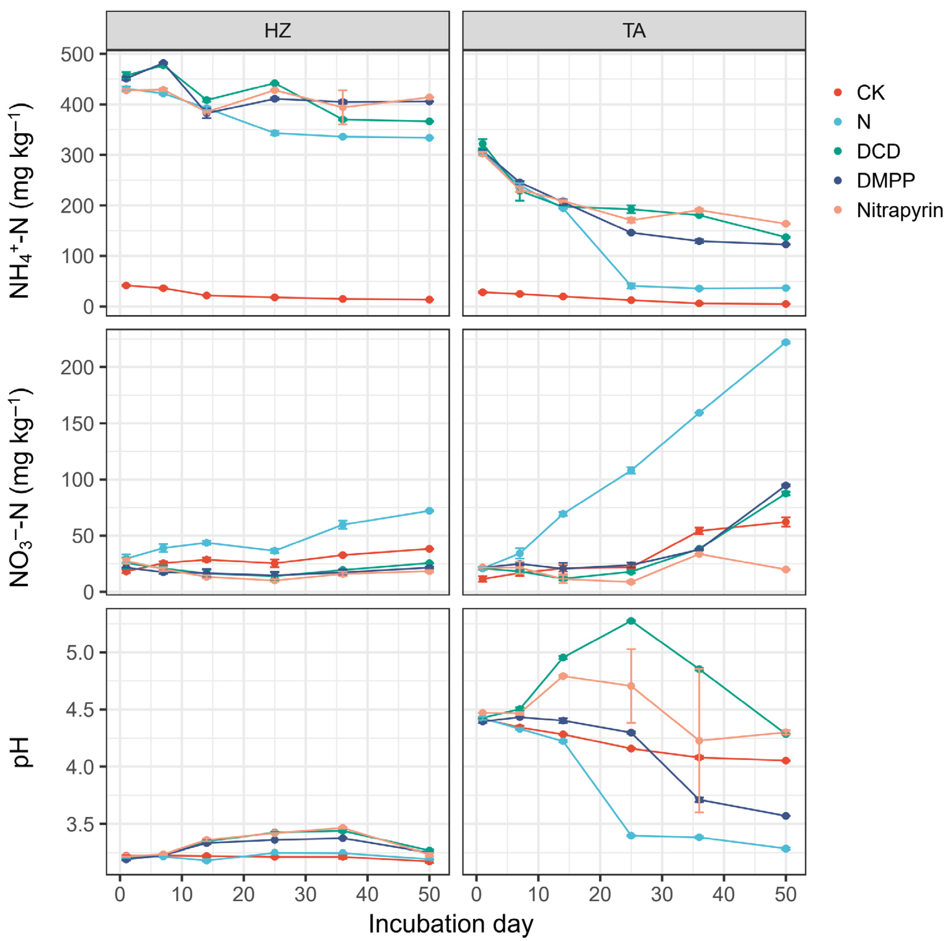 - Gao, J.; Luo, J.; Lindsey, S.; Shi, Y.; Wei, Z.; Wang, L.; Zhang, L. Effects of Soil Properties on Urea-N Transformation and Efficacy of Nitrification Inhibitor 3, 4-Dimethypyrazole Phosphate (DMPP). Soil Sci. Plant Nutr. 2022, 68, 228–237. [Google Scholar] [CrossRef]