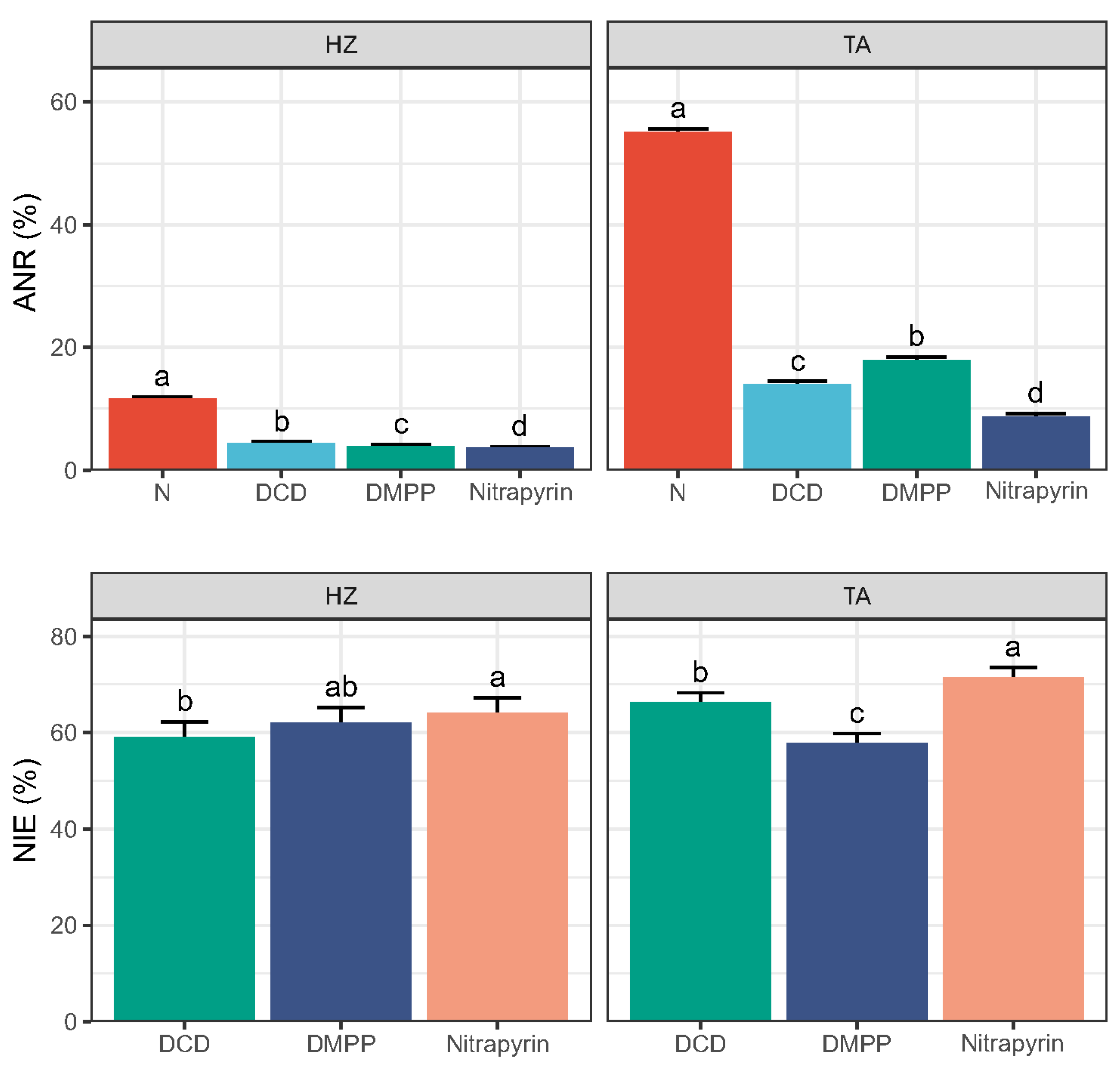 4.1. Effects of Soil Properties on Nitrification Inhibition Efficiency