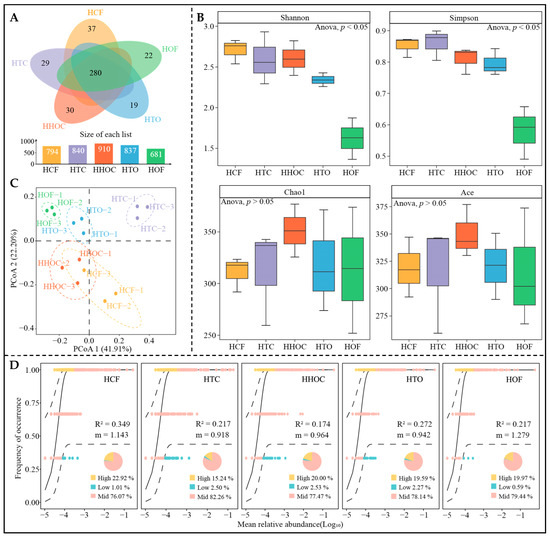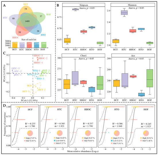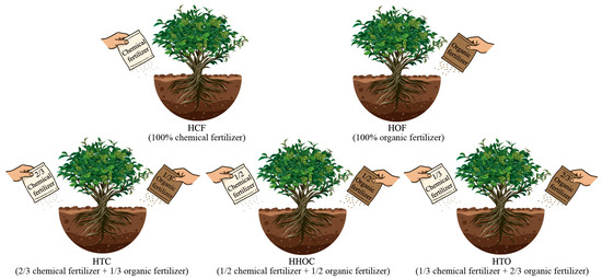To investigate the impact mechanism of different fertilization modes on the rhizosphere soil microecology of Camellia sinensis (C. sinensis), this study adopted 100% chemical fertilizer (HCF), 100% organic fertilizer (HOF), 2/3 chemical fertilizer + 1/3 organic fertilizer (HTC), 1/2 chemical fertilizer + 1/2 organic fertilizer (HHOC), and 1/3 chemical fertilizer + 2/3 organic fertilizer (HTO) applied to C. sinensis. In May 2025, samples were collected for measurement and analysis. The results showed that the combination of organic–inorganic fertilizers (especially HTO) significantly increased the content of available nutrients in the soil while maintaining a high pH value, organic matter, and total nutrient content. Microbial community analysis showed that the key microbial groups sensitive to different fertilization responses were Thauera, Zoogloea, and Ceratobasidium. Functional prediction revealed that HCF significantly enriched nitrogen respiration and plant pathogenicity functions, while HOF treatment resulted in a decreased relative abundance of sequences related to pathogenesis. The results of structural equation modeling and path intensity analysis indicated that there was a significant synergistic effect among key microbial communities, which strongly drove their functional expression. The enhancement of these functions resulted in a decrease in soil pH, total soil nutrient content, and available nutrient content. The combination of organic and inorganic fertilizers could optimize the microbial community structure, balance its functional expression, and alleviate the effects caused by single fertilization. This study preliminarily explored the effects of different fertilization modes on the rhizosphere soil microbial community and nutrient transformation of C. sinensis, providing a reference for the subsequent application of organic–inorganic fertilizers in C. sinensis planting.