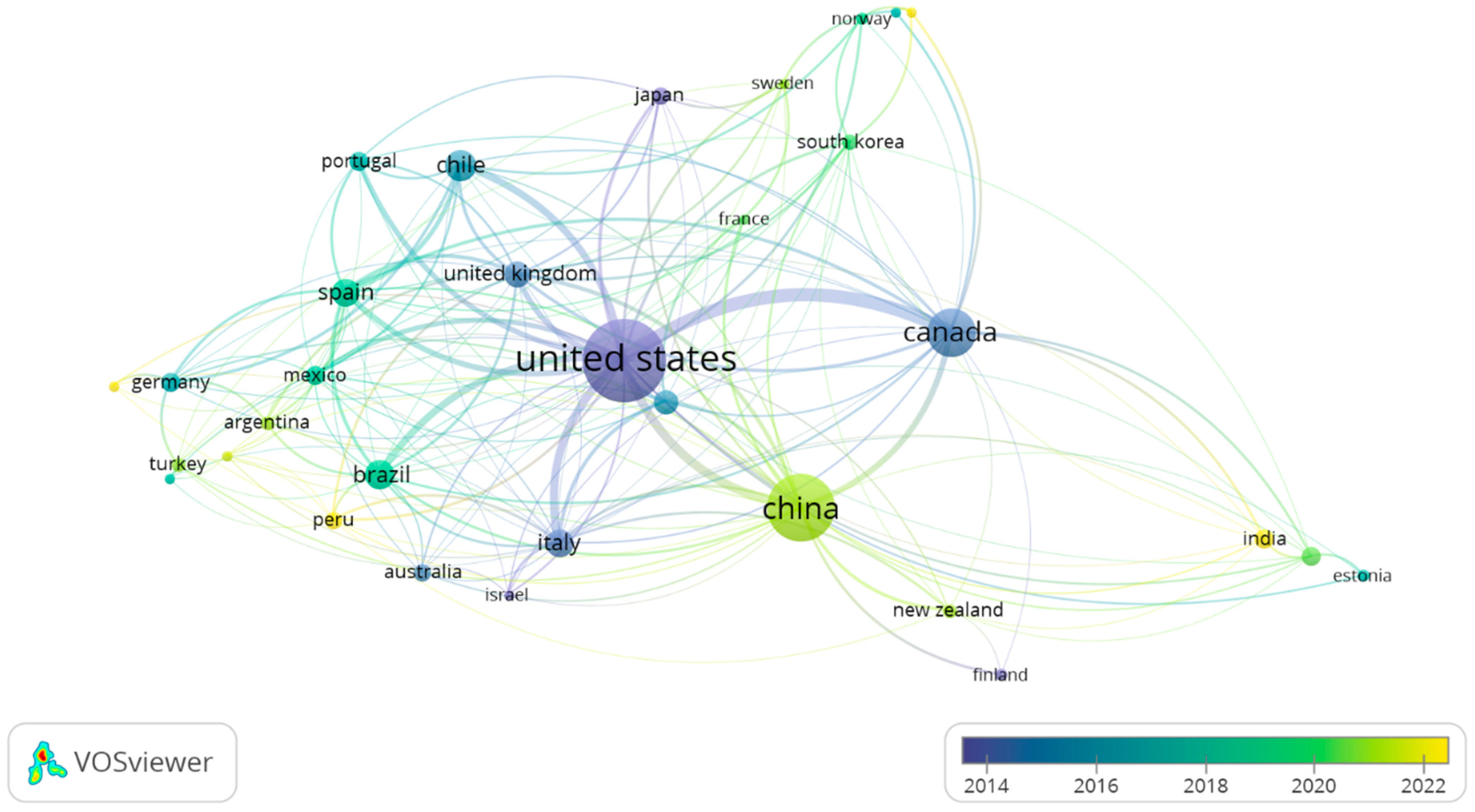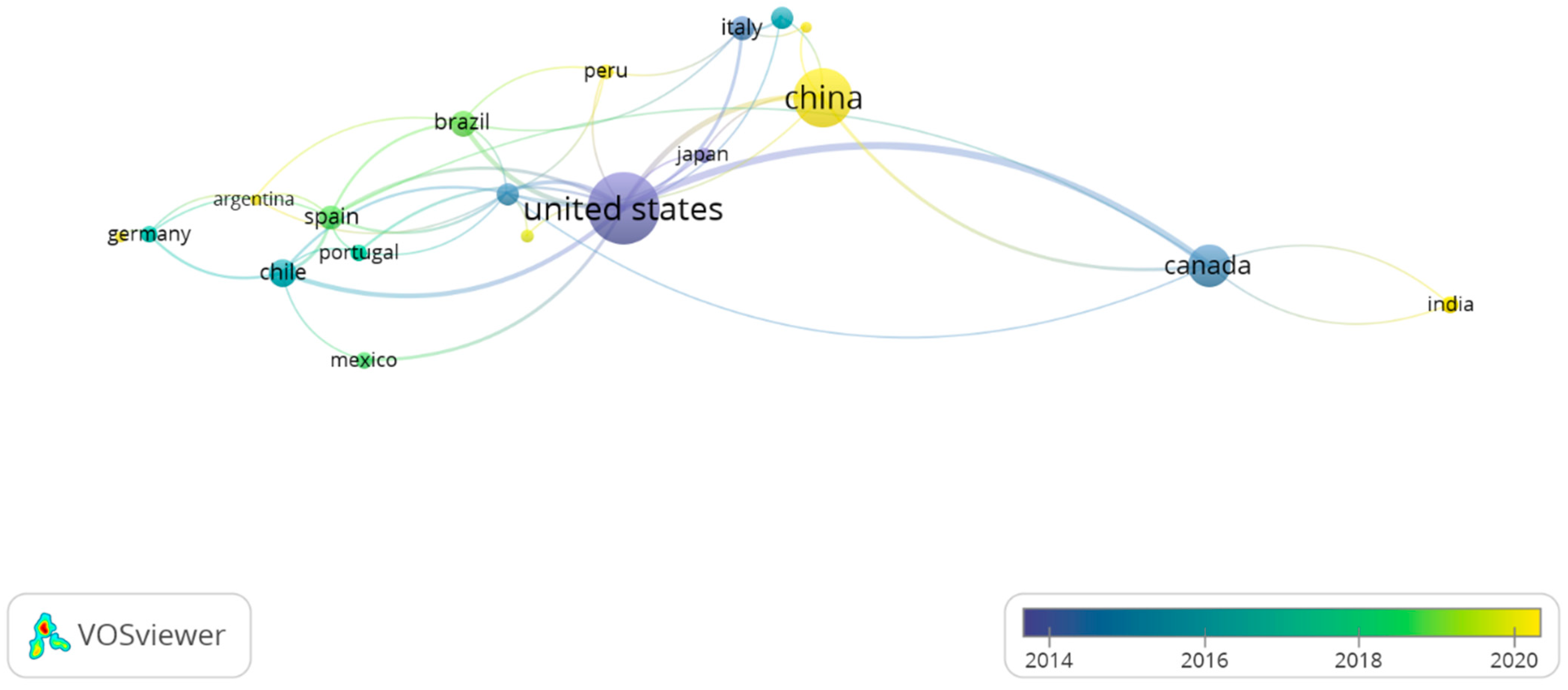 3.5. Co-Authorship Network by Country