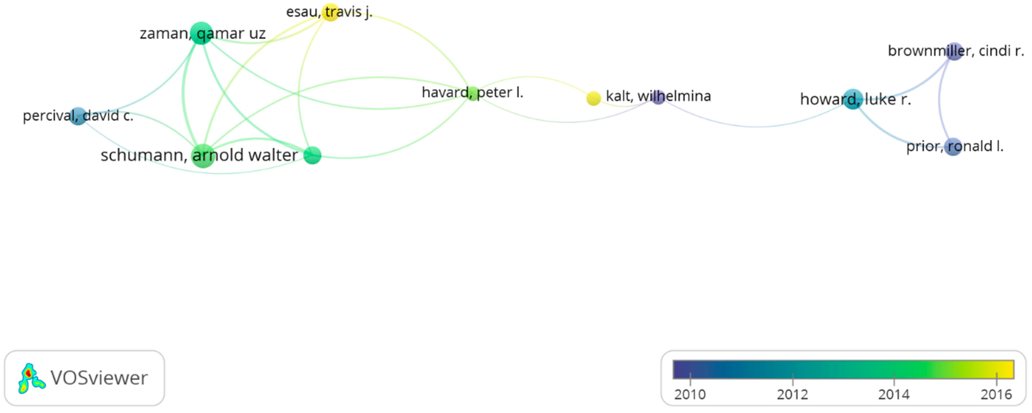 3.10. Bibliographic Coupling Network Among Authors