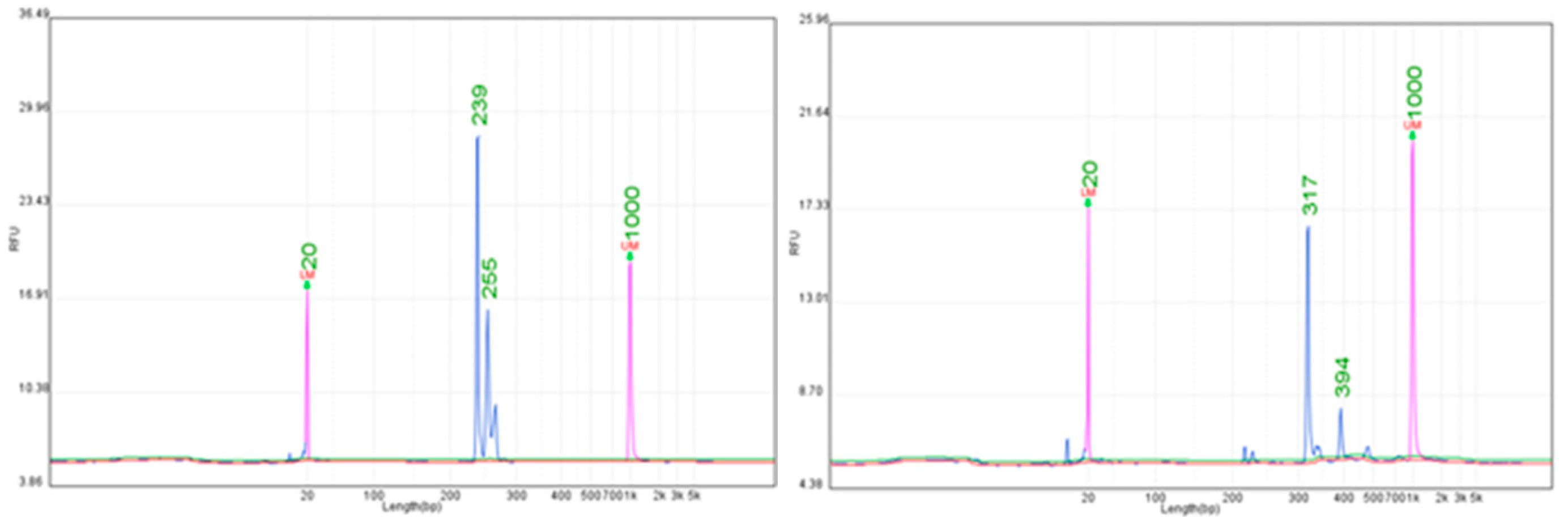 2.6. Intra- and Inter-Day Precision of SSR Marker Analysis