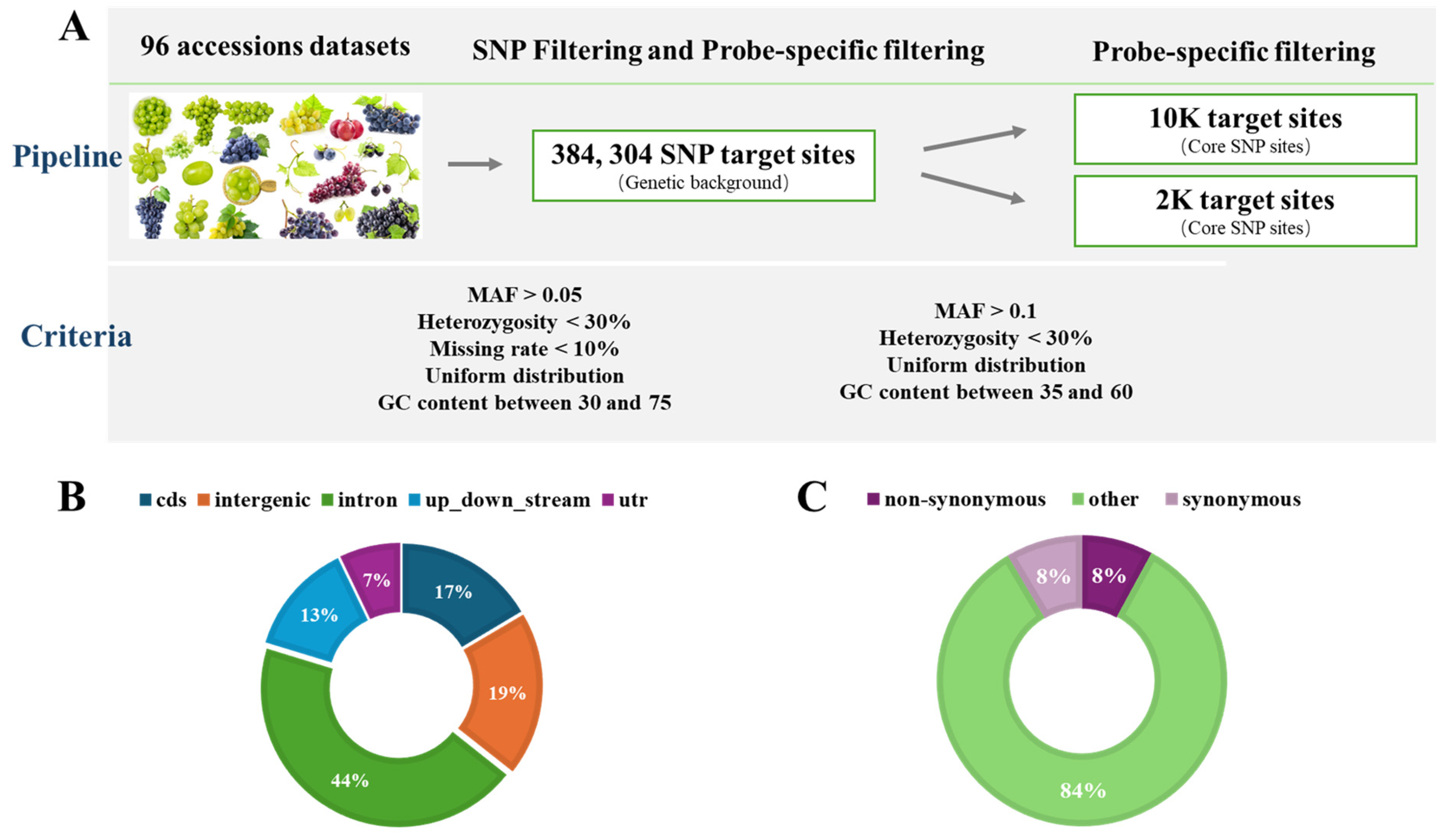 APA StyleZhang, L., Miao, Y., Song, Y., Teng, Y., Lu, Y., Song, S., He, J., Liu, H., & Ma, C. (2025). Design and Selection of SNP Markers for Grape Integrated Chip Arrays. Horticulturae, 11(12), 1509. https://doi.org/10.3390/horticulturae11121509