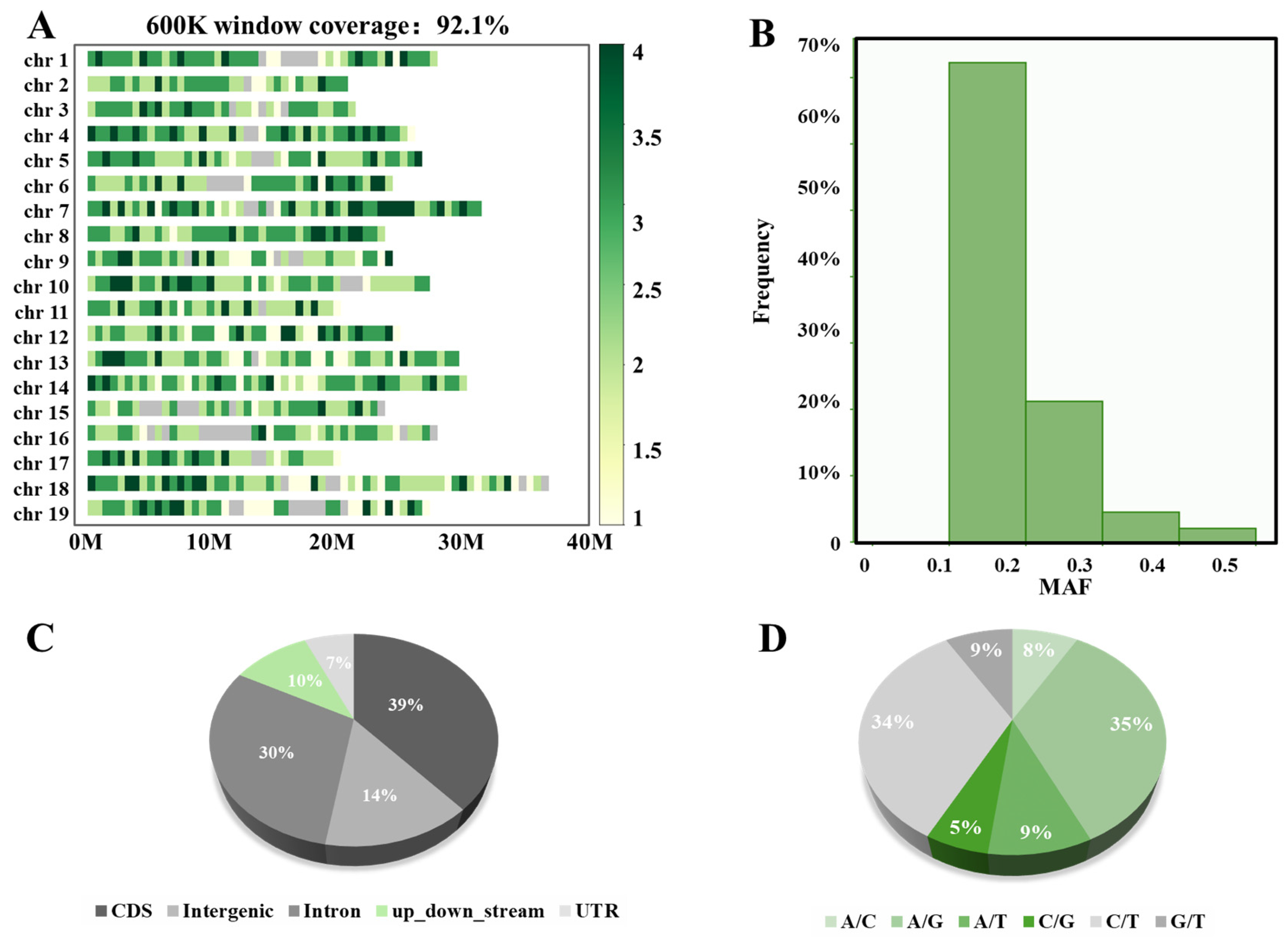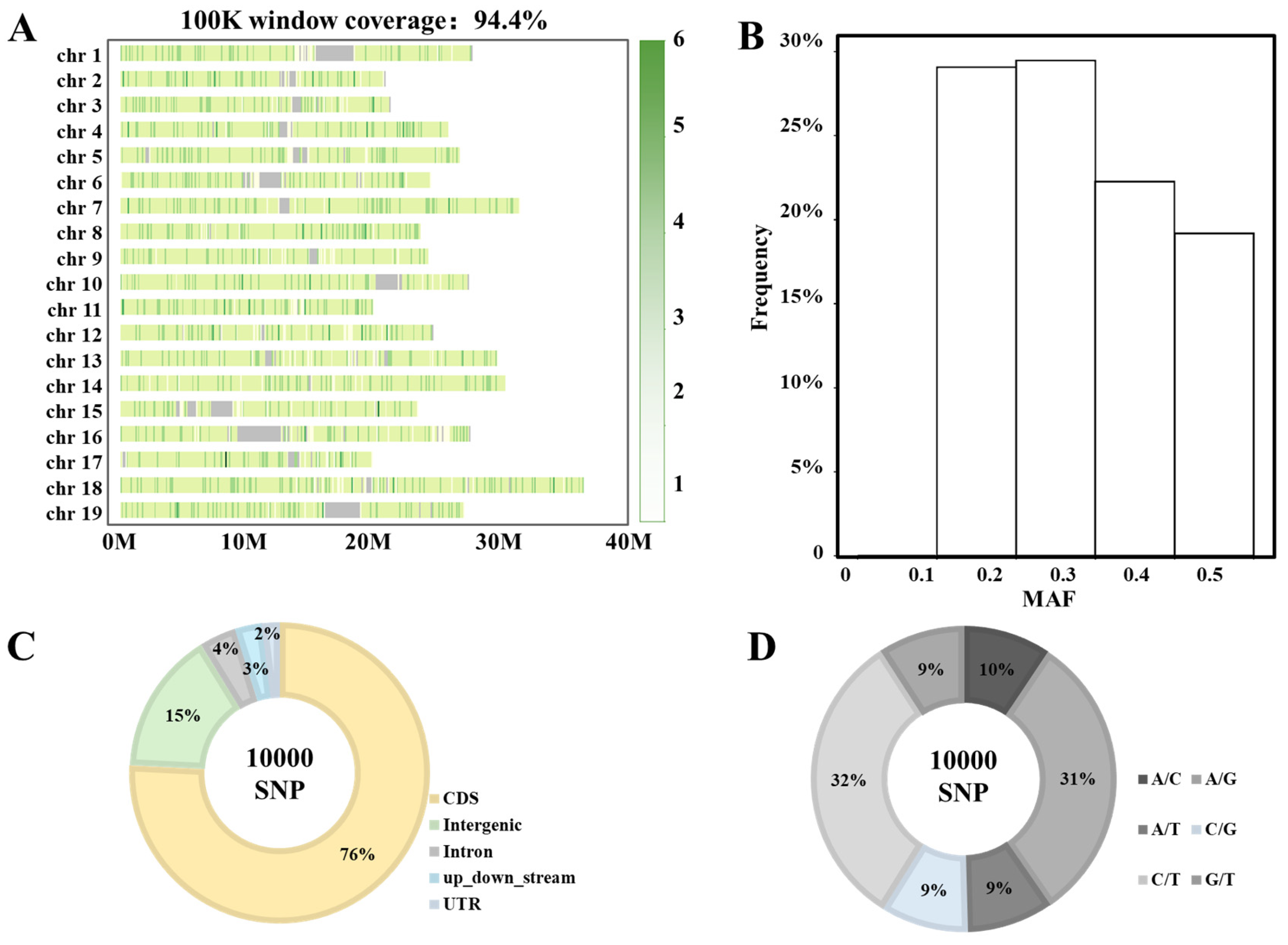 3.3. Analysis of 2k Core SNP Loci in Genomic Regions
